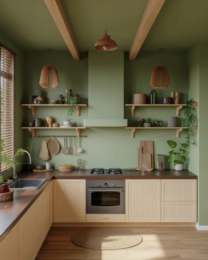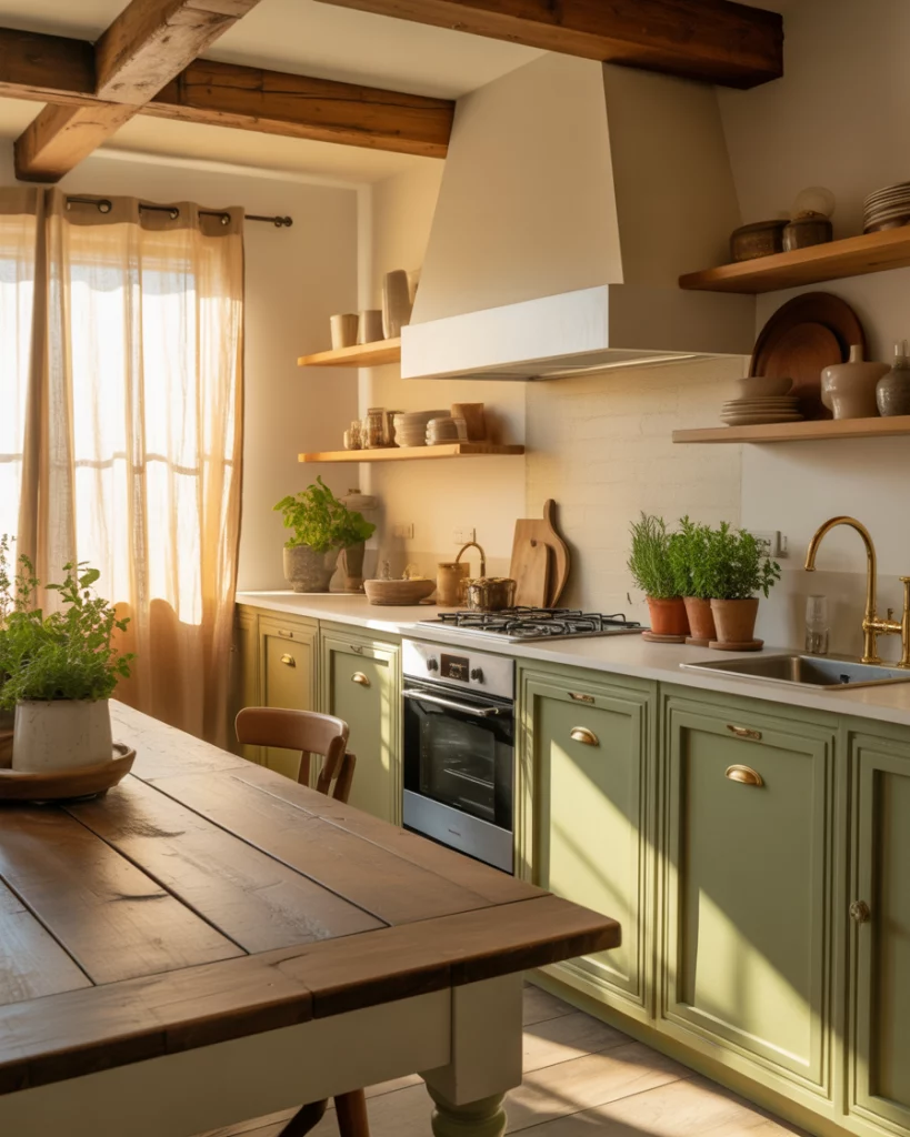 Updated country kitchens combine soft creams with earthy greens and textured woods. These scheme ideas feel comforting yet elevated, especially when paired with open shelving or vintage hardware. They stand out as best options for homeowners wanting classic touches with fresh 2026 trends baked in.