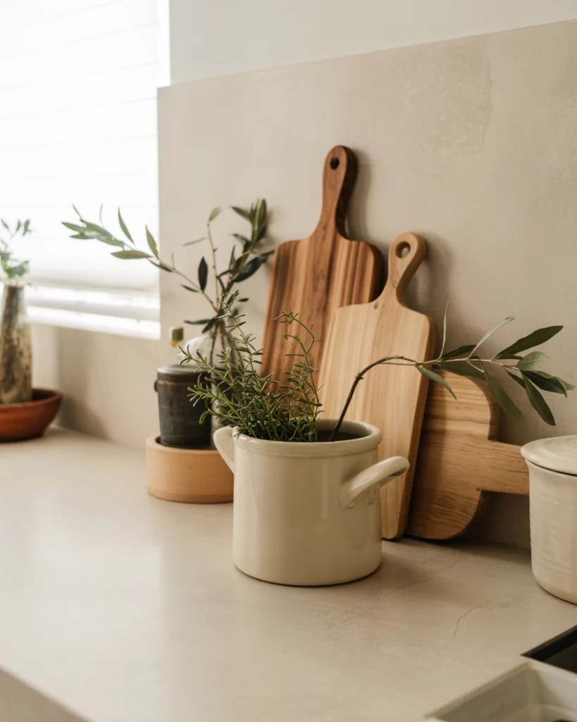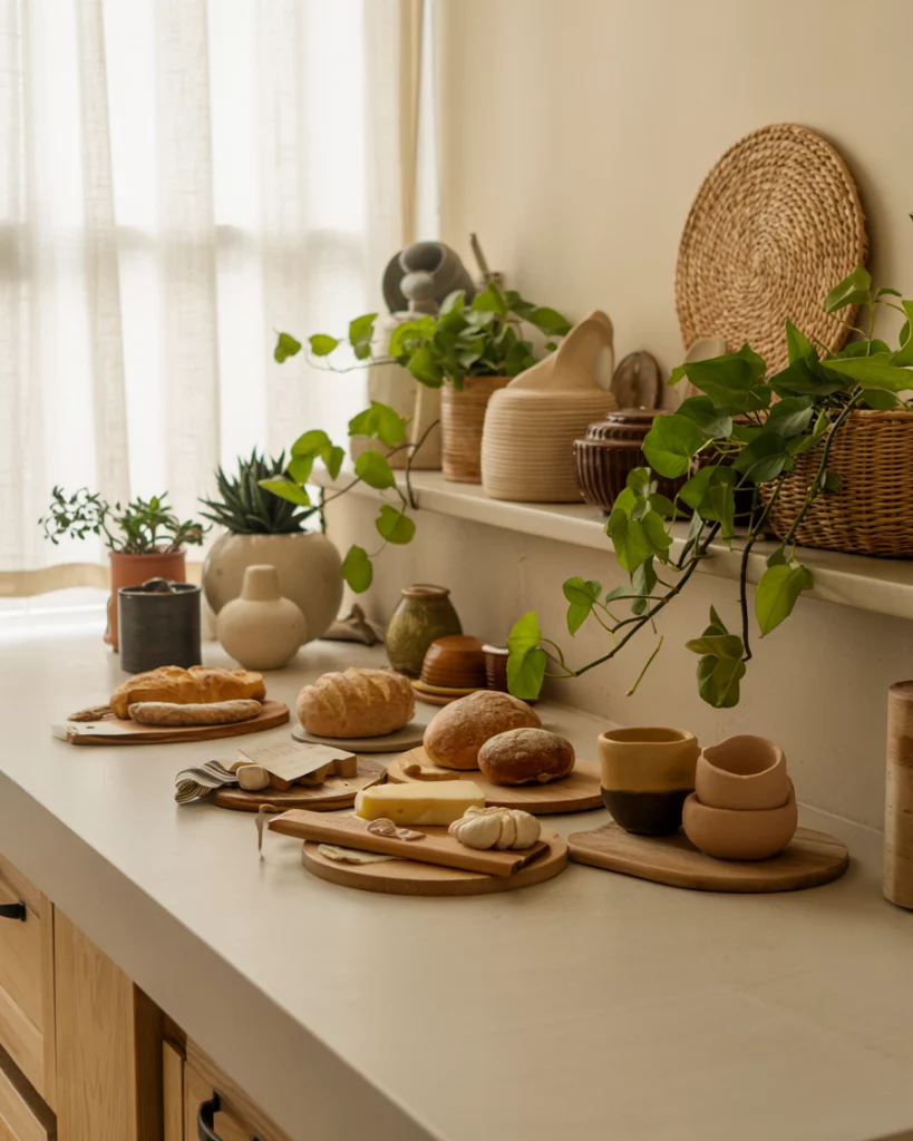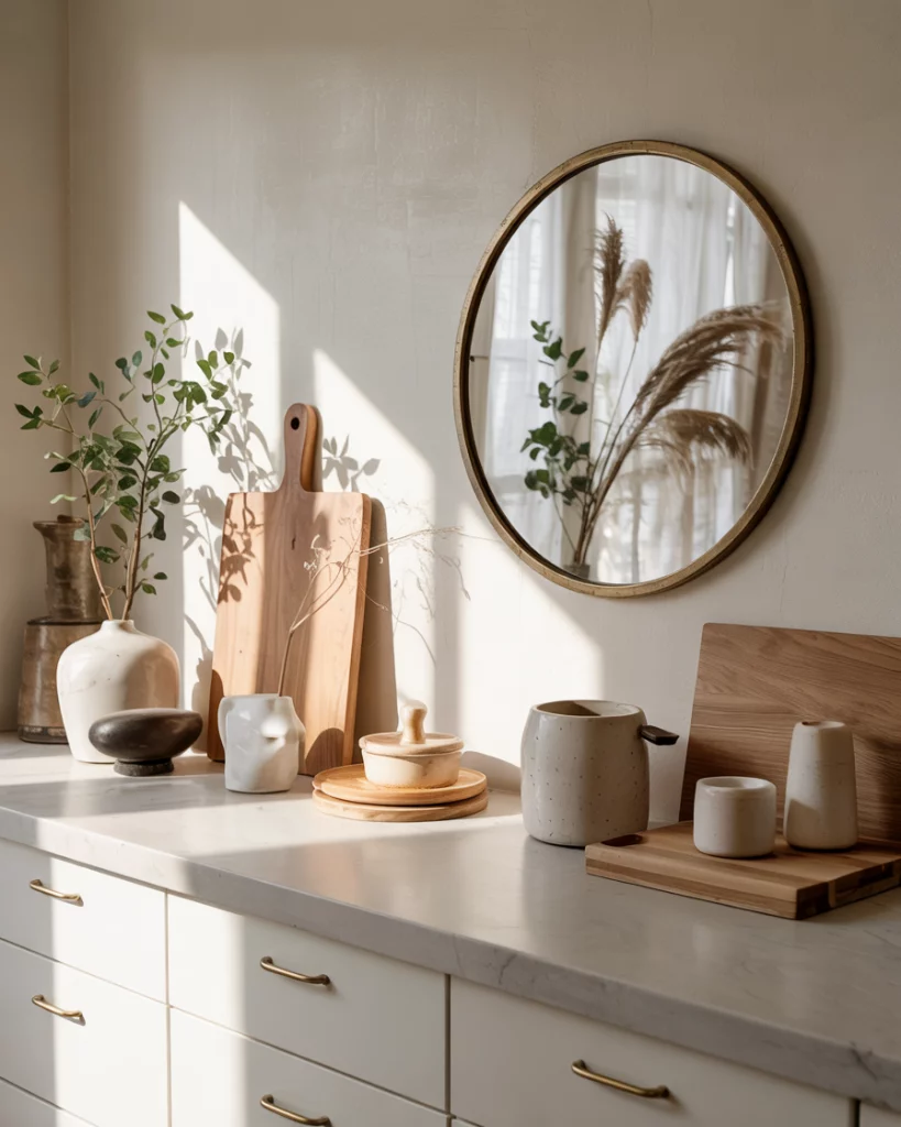 If your kitchen is a true workhorse, focus on harmony between beauty and task-oriented pieces. A cutting board stack, oil cruet, and a sturdy functional crock create a streamlined look. Add a modern bowl or a subtle accessory piece to finish without clutter. Designers say to organize by frequency. If you use it daily, it earns a permanent counter spot; if not, store it. This rule keeps the prep zone practical and attractive.