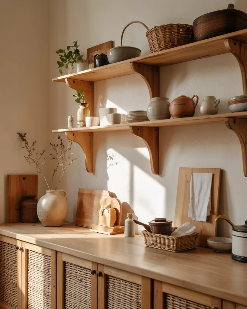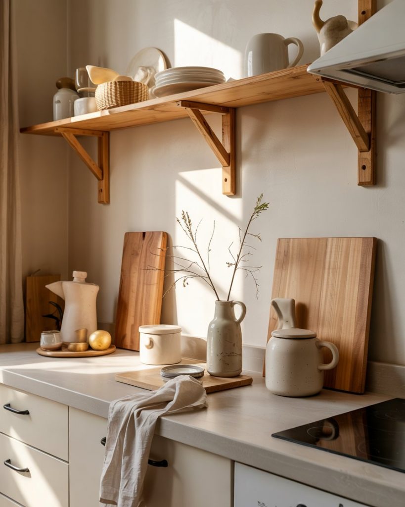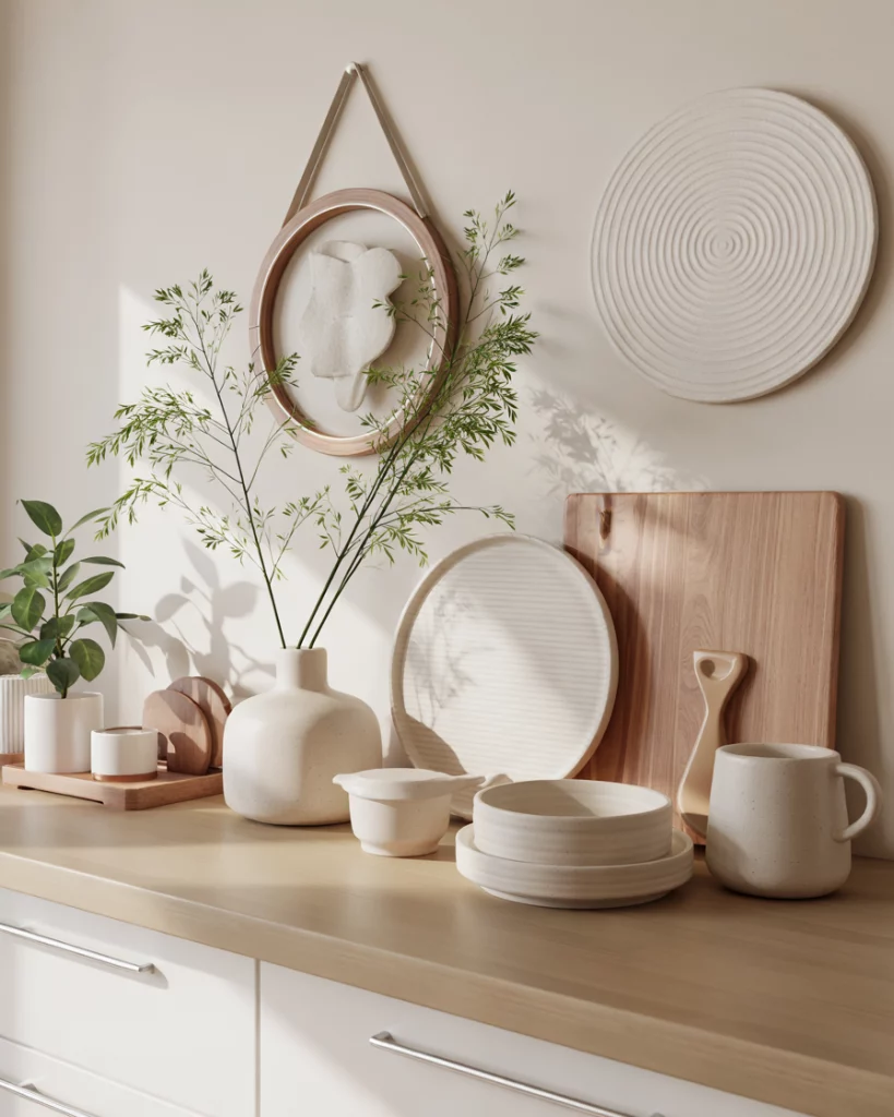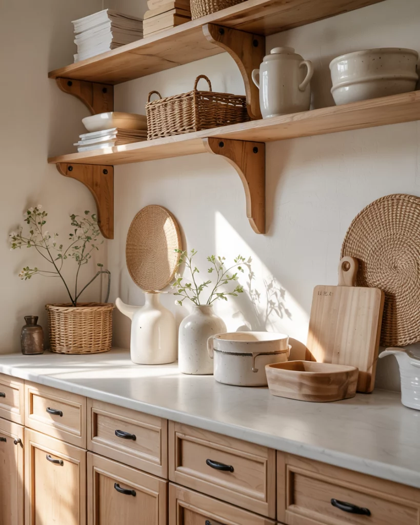 This idea layers subtle tones for a breezy, natural feel. Mix pale ceramics, a warm board, and a white jar to keep the layout open. Add one modern organic texture and a creative accessory piece for gentle contrast. These additional ten ideas offer even more ways to shape a kitchen that feels tailored, warm, and deeply personal. Try mixing elements from different trends to discover your signature style. And if one of these sparked a new direction, share your thoughts—I’d love to hear which concept you’re trying next.
