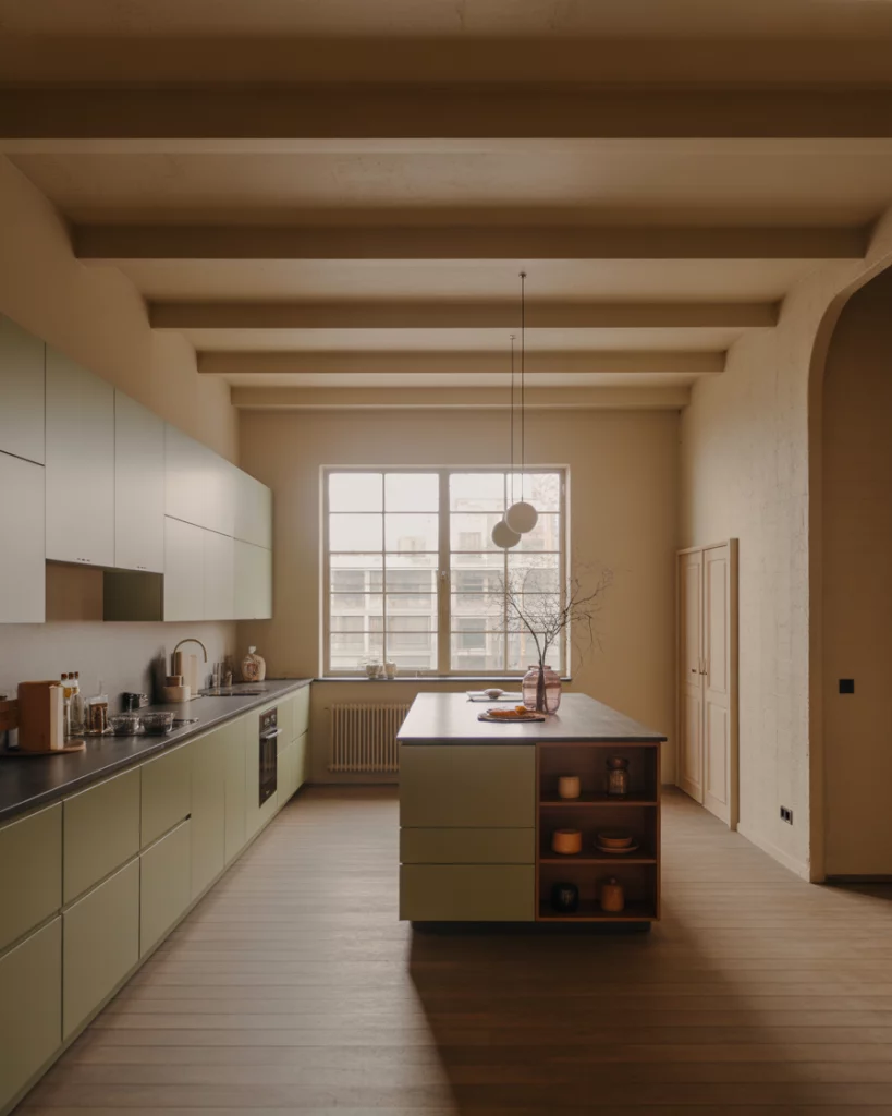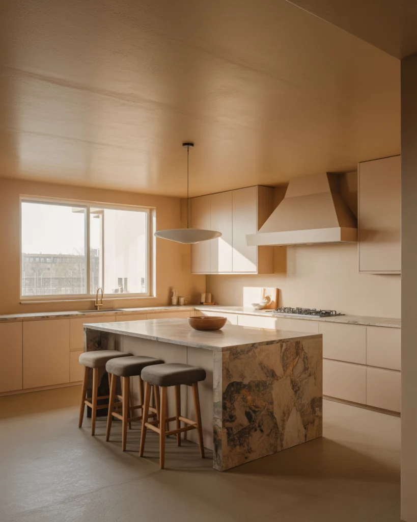 When the island becomes the anchor, the room naturally orbits around prep, gathering, and storage. A sculpted island, intuitive ideas with an island, or softened edges create flow even in smaller rooms. This approach thrives when movement between stations is seamless and the island doubles as both workspace and social perch. Where it works best: open-plan homes, especially in suburban America, where the kitchen acts as the daily anchor. The island becomes a drop zone for groceries, homework, or morning coffee, cementing its role as the multifunctional heart of the home.