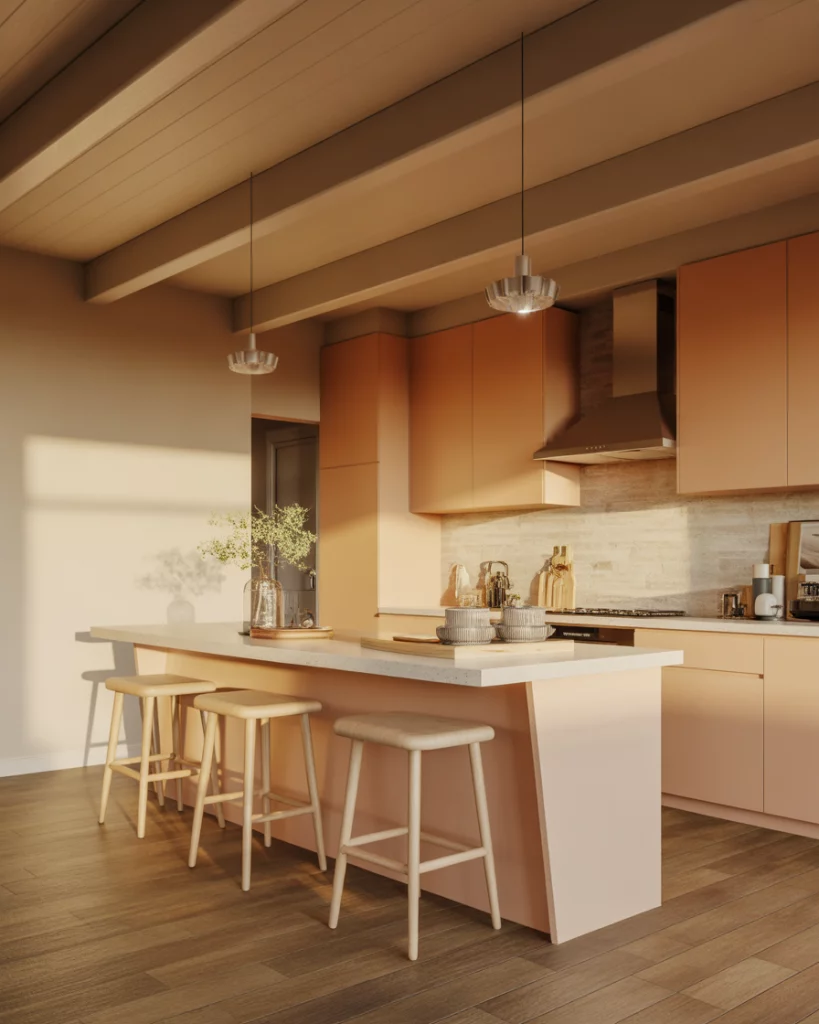 An angled peninsula brings a gentle shift in direction that subtly guides traffic. It works beautifully in homes where the kitchen merges with dining or family rooms. Blending a soft shape, considered ideas, or warm open shelving makes the angle feel intentional rather than purely structural. Real homeowner behavior: angled peninsulas often become the default spot for quick chats or after-school snacks. The slight turn draws people in naturally, making it a casual meeting point in the home.