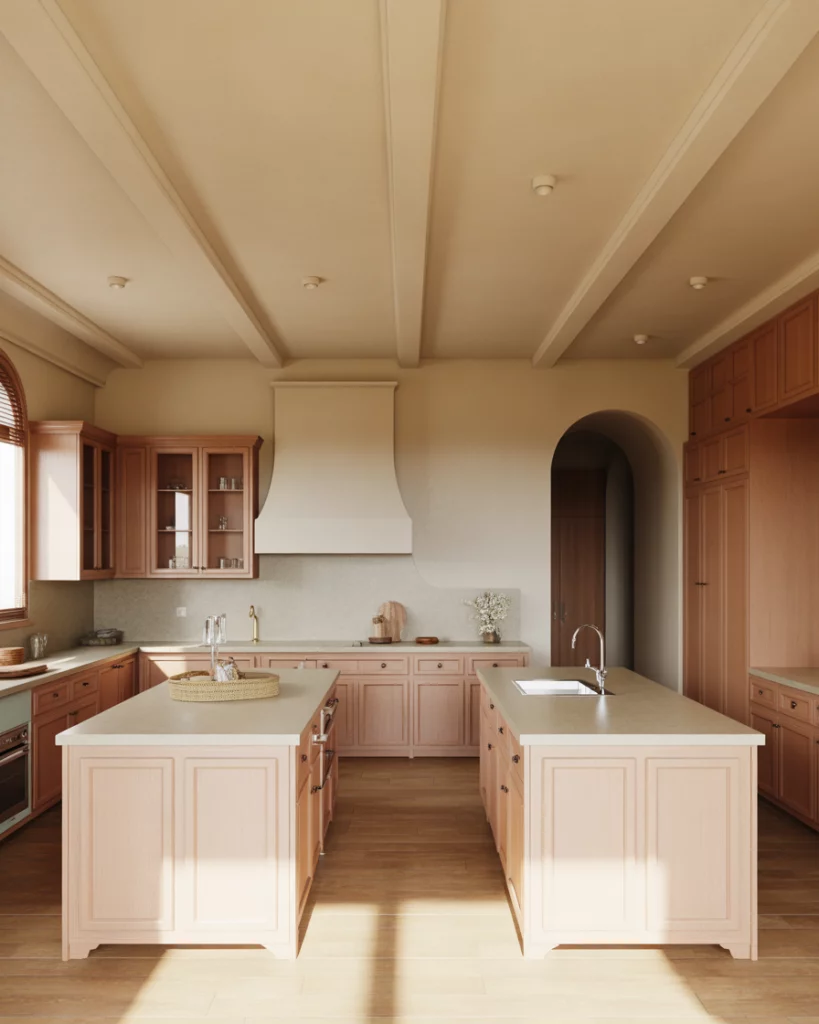For larger homes, double islands create a striking sculptural effect. Pairing bold surfaces, flexible double island zones, or choreography with island floorplan moves elevates both workflow and drama. This setup suits cooks who love defined zones—one for prep, one for plating or conversation—without compromising spaciousness. Common mistakes to avoid: making aisles too tight, choosing oversized islands, or mismatching materials between them. Proper spacing ensures fluid movement and prevents the room from feeling like a showroom—double islands need breathing room to feel intentional rather than excessive.