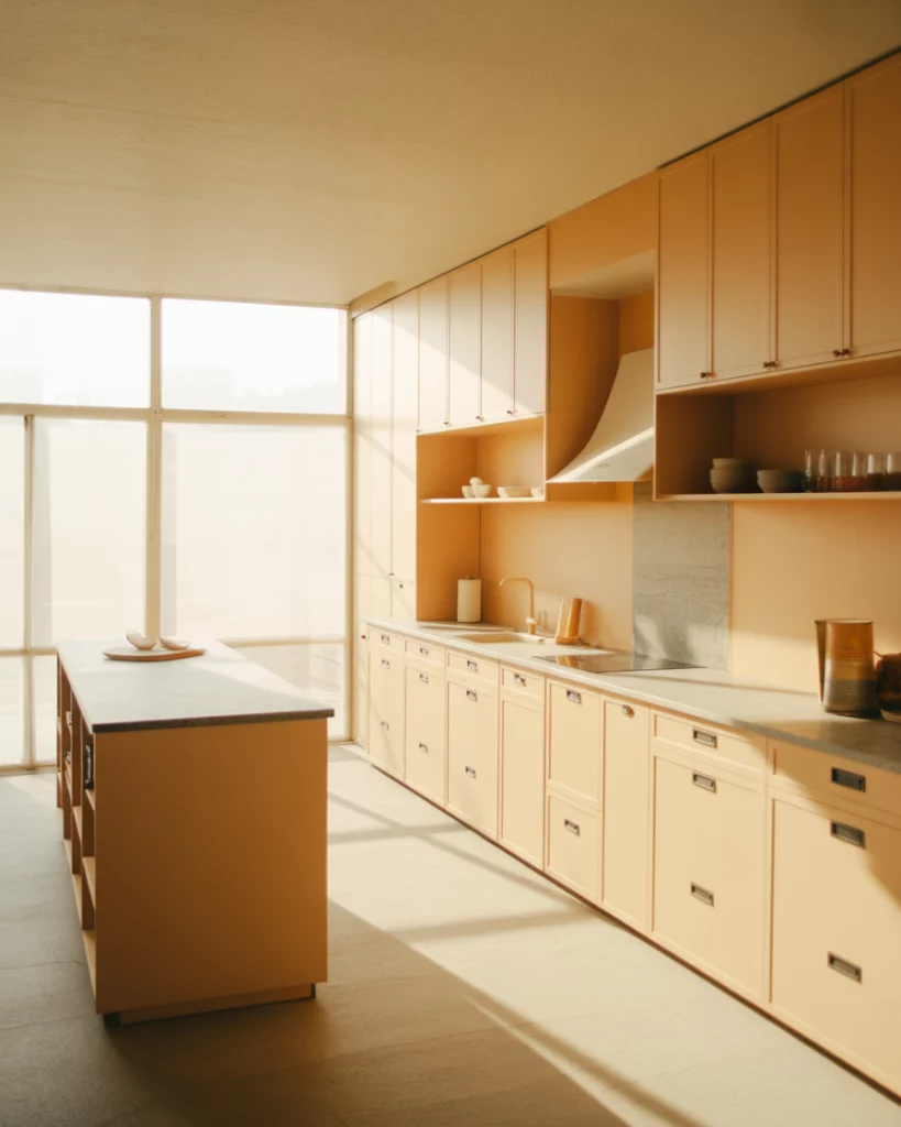 A single-wall arrangement feels clean and unfussy, yet it can still offer depth when paired with smart accents. This look suits compact homes or studios where maintaining openness matters. Integrating a slim island, a subtle wall oven, or a modular prep zone creates balance without clutter. The layout works beautifully when natural light and purposeful lines shape the room’s energy. A practical insight: single-wall kitchens thrive when storage is vertically maximized. Tall cabinets, hidden organizers, and interior lighting ensure the space feels expansive rather than sparse. Pairing matte finishes with a calm palette helps keep everything visually controlled, creating both efficiency and serenity in a small footprint.
