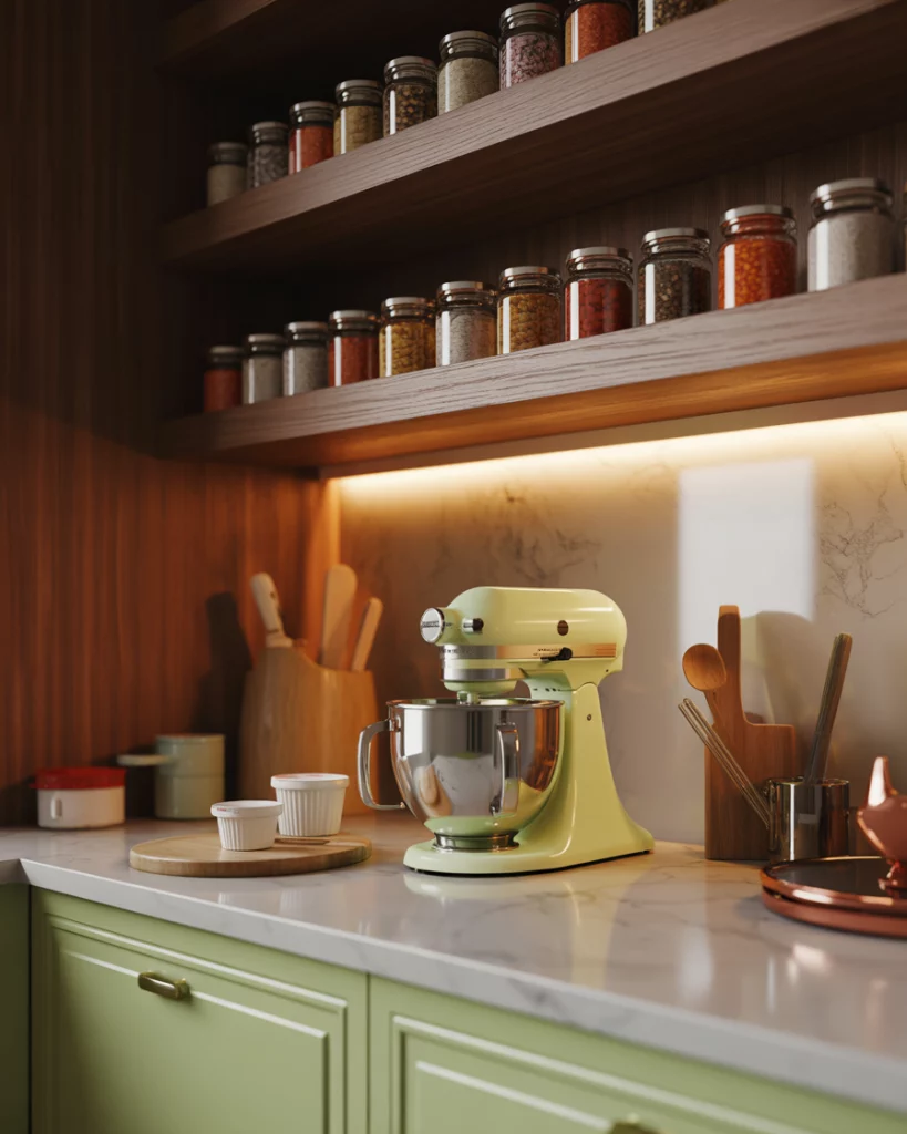 Dedicated craft spaces inside kitchens are trending, especially for hobbyists. A built-in canning zone, petite small bakery counter, or focused work nook keeps tools contained and creativity flowing. These micro-stations turn passion projects into accessible rituals without overwhelming the main kitchen workflow. Where it works best: households that cherish homemade goods—soups, breads, jams, or pastries. A mini craft corner offers structure and joy, especially in regions with seasonal harvests or lively weekend traditions. It keeps the passion alive without monopolizing the main kitchen.