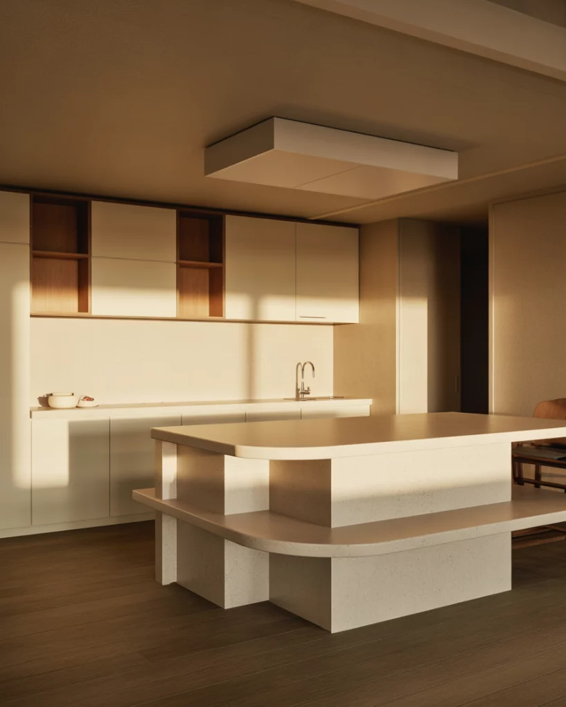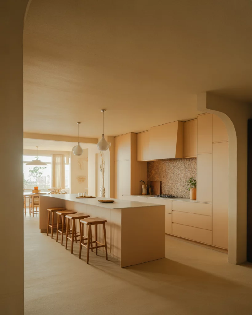 When the island becomes the anchor, the room naturally orbits around prep, gathering, and storage. A sculpted island, intuitive ideas with an island, or softened edges create flow even in smaller rooms. This approach thrives when movement between stations is seamless and the island doubles as both workspace and social perch. Where it works best: open-plan homes, especially in suburban America, where the kitchen acts as the daily anchor. The island becomes a drop zone for groceries, homework, or morning coffee, cementing its role as the multifunctional heart of the home.