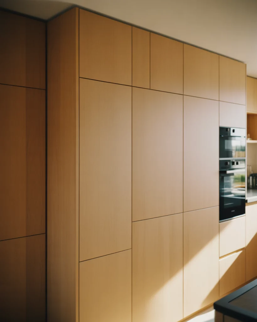 A concealed utility wall lets the rest of the kitchen shine. With panel-front appliances, integrated storage nooks, and minimal seams, the room feels crisp and uncluttered. Features like refined types of built-ins or hidden plans strengthen this understated design approach. Where it works best: modern homes and condos that value visual quiet. Hidden storage ensures daily necessities stay reachable while preserving a serene, gallery-like façade across the main working wall.