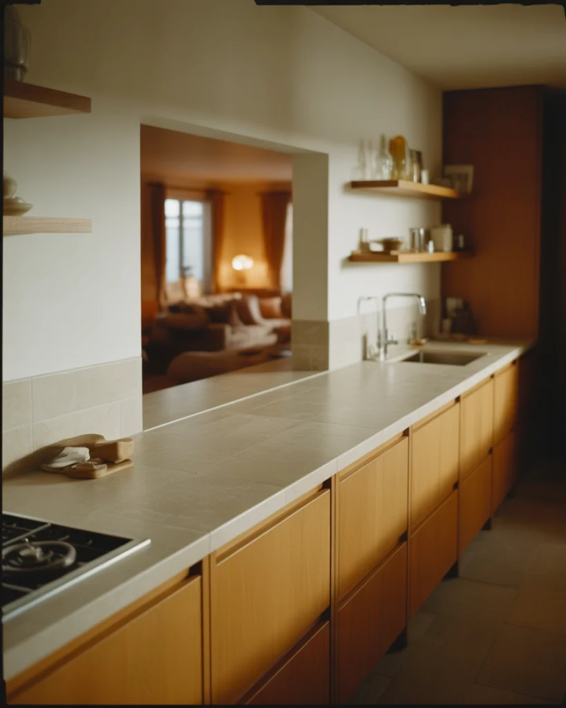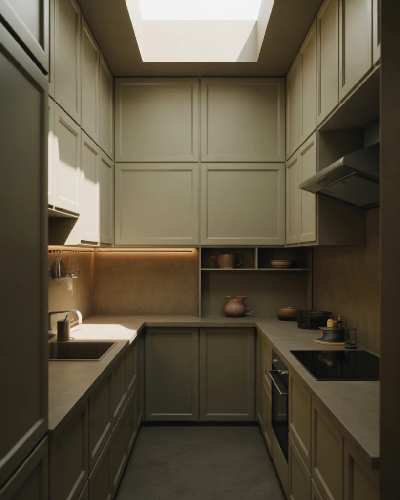 Narrow kitchens demand precision. Using vertical lines, airy textures, and compact features like a small narrow pantry or carefully scaled dimensions creates a satisfying sense of control. When well-lit, the space feels cozy rather than squeezed, making even slim footprints feel surprisingly capable. Real homeowner behavior shows that narrow-kitchen users often default to strategic batching—prepping ingredients first, then cooking—so traffic stays smooth. Their biggest advantage: everything is within arm’s reach, making daily routines quicker than in sprawling layouts.
