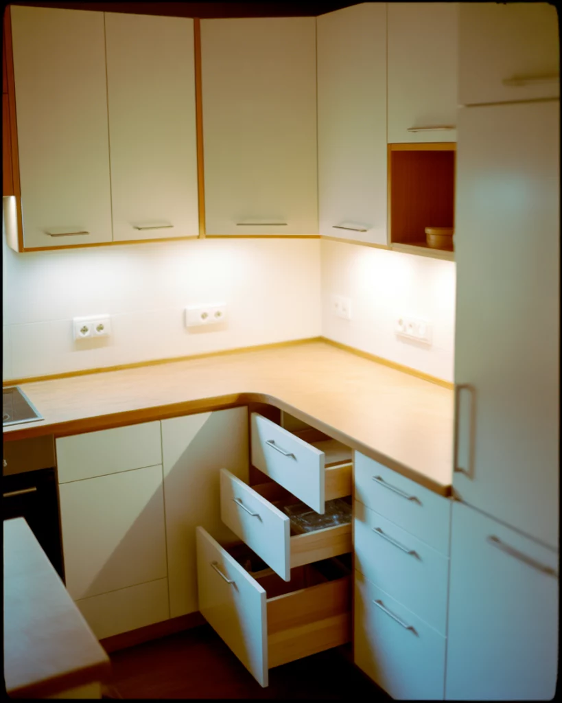 Corner-forward layouts maximize tricky angles, transforming overlooked spaces into cozy command centers. A corner prep area, recessed plans for storage, or a tucked-away appliance garage can make the arrangement shine. Small homes benefit most when every inch curves into function, creating surprising depth in what appears modest at first glance. Budget angle: corner layouts often save money by reducing the linear footage of cabinetry while still delivering ample storage. Custom corner pull-outs may add cost, but the overall footprint typically keeps renovation budgets in check, making this a strong contender for smaller remodels.