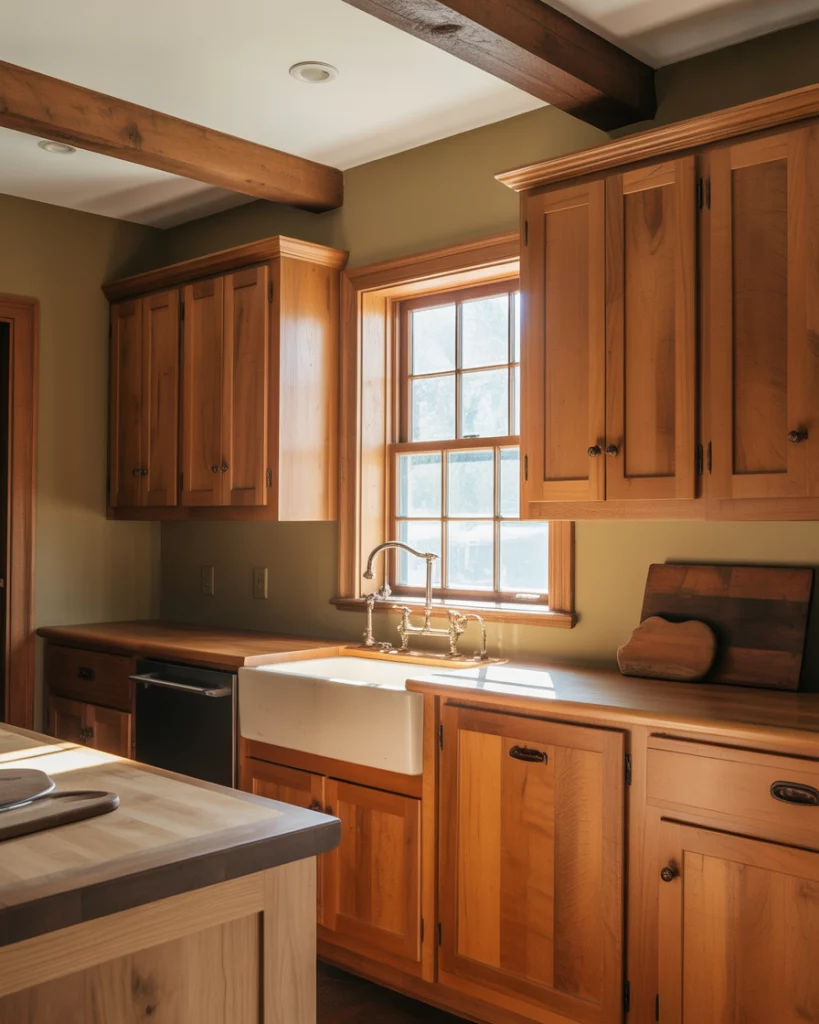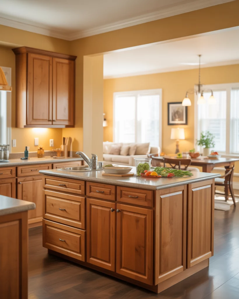When you possess maple cabinets, painting your walls a warm honey beige or a butterscotch shade brings out amber undertones in this wood. The result feels golden, warm, and inviting—perfect for open-area kitchens that flow to a living room. This shade is becoming increasingly popular with homeowners seeking subtle warmth without going too dark. Designers recommend pairing it with natural wovens such as shades and brushed-nickel hardware.