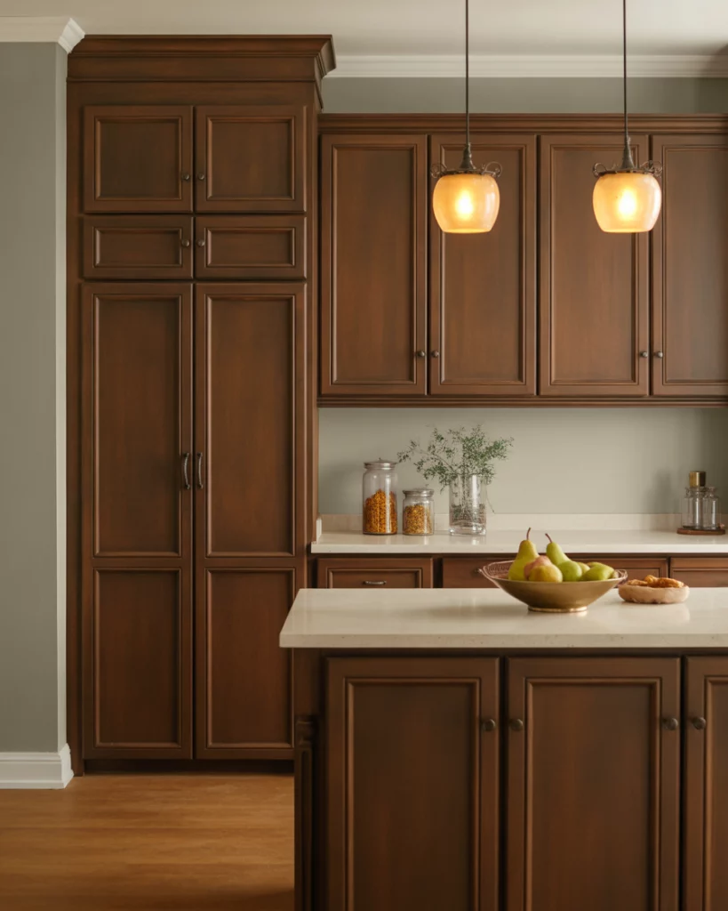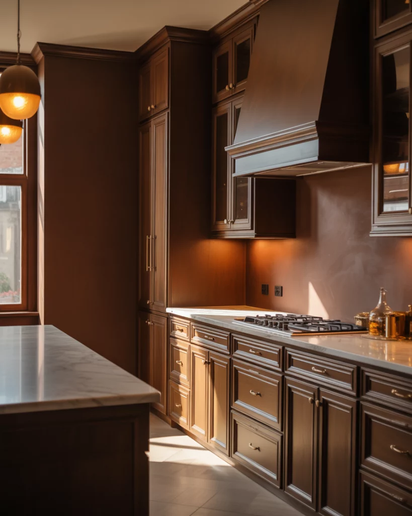 6. Rich Mocha Brown Walls Around Brown Cabinets
