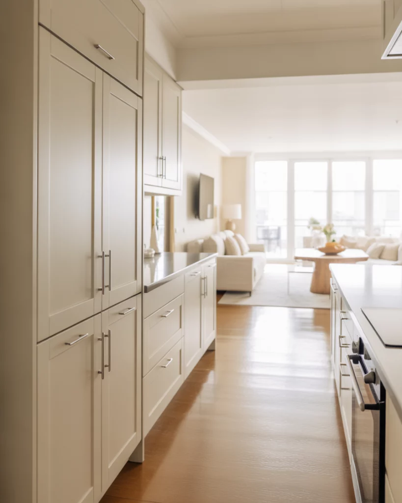 If your cabinets are white cabinets, 2026’s theme is not so much to ditch white but to reach for a warmer or darker white to create depth as well as character. A clean, crisp white wall behind white cabinets provides a fresh, clean canvas without feeling antiseptic. This is especially effective in open-plan configurations where your kitchen flows through to your living room so that space feels connected. Designers predict off-whites might continue past 2026 as a neutral base.