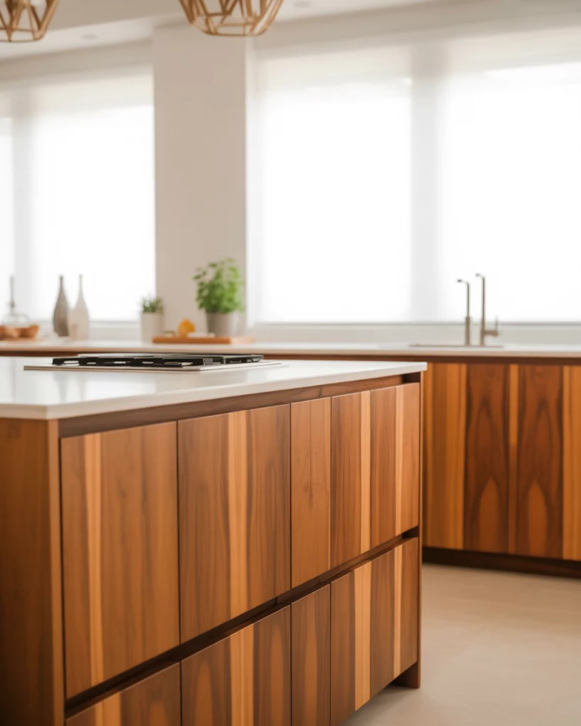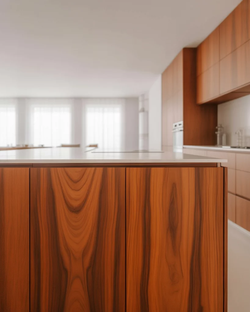 If you’re lucky enough to have wood cabinets (whether oak, maple, cherry, or walnut), painting the walls crisp white gives strong contrast and contemporary punch. The result is that the cabinetry becomes the star of the room, set against a clean, bright backdrop. This is an especially strong strategy for open-plan homes where your kitchen flows into dining or living zones—the white walls allow furniture, art, and curtains to stand out too.