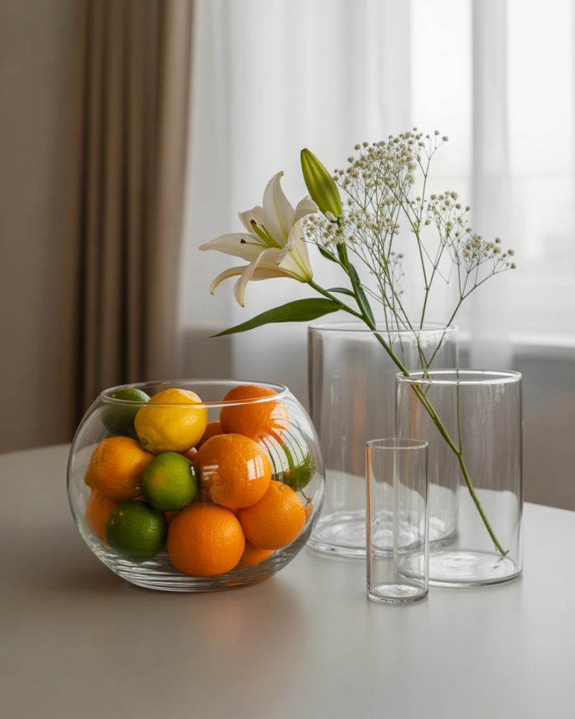 Using glass as a main element for everyday centerpiece ideas adds brightness and elegance. From transparent bowls filled with citrus to layered circle vases with seasonal flowers, the versatility is endless. This style works for round, square, or rectangle tables and is easy to maintain since you can quickly swap the contents. Designers fromHouse Beautifulhighlight that glass never feels heavy, making it great for modern spaces.