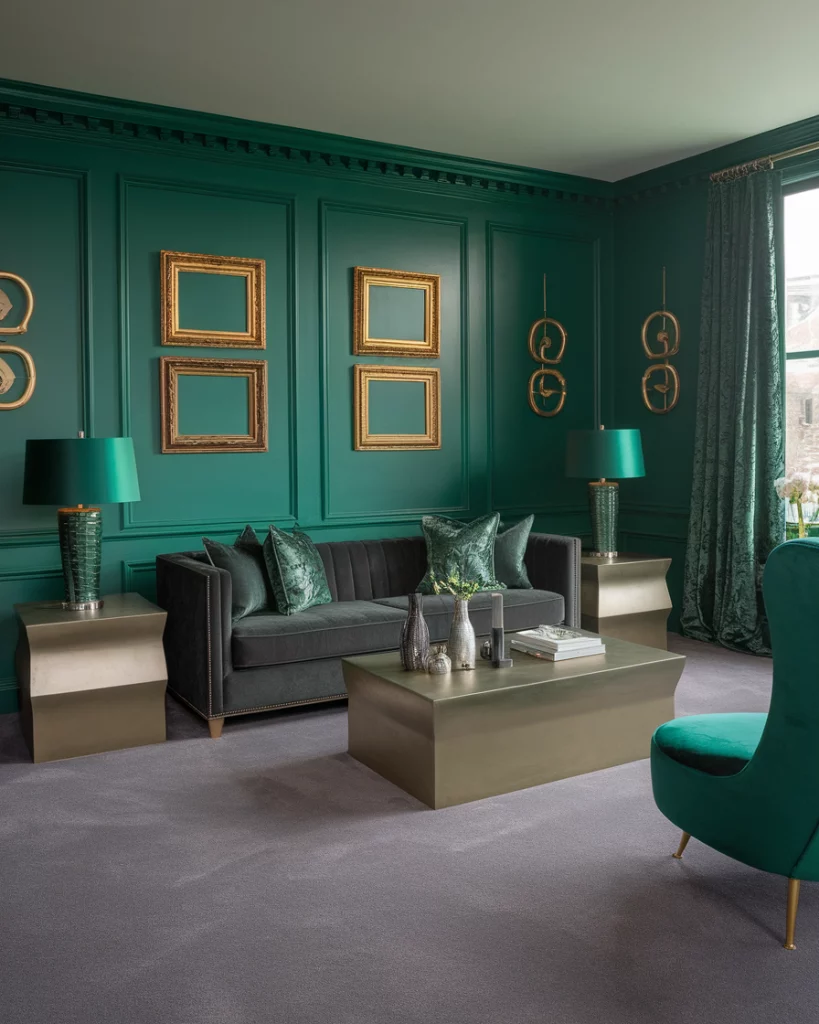 23. Emerald Green Drama with Grey Carpet