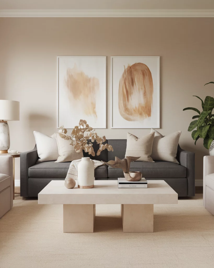 3. Charcoal Couch Meets Light Neutrals