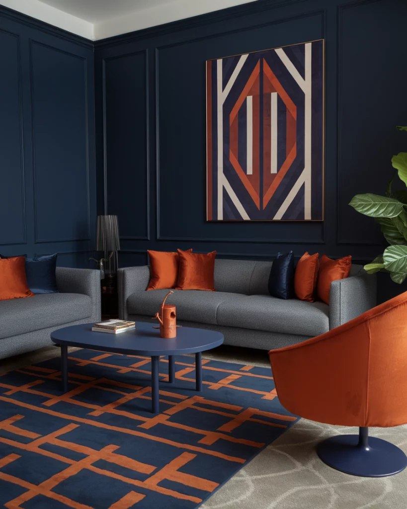 5. Sophisticated Blue and Orange Contrast