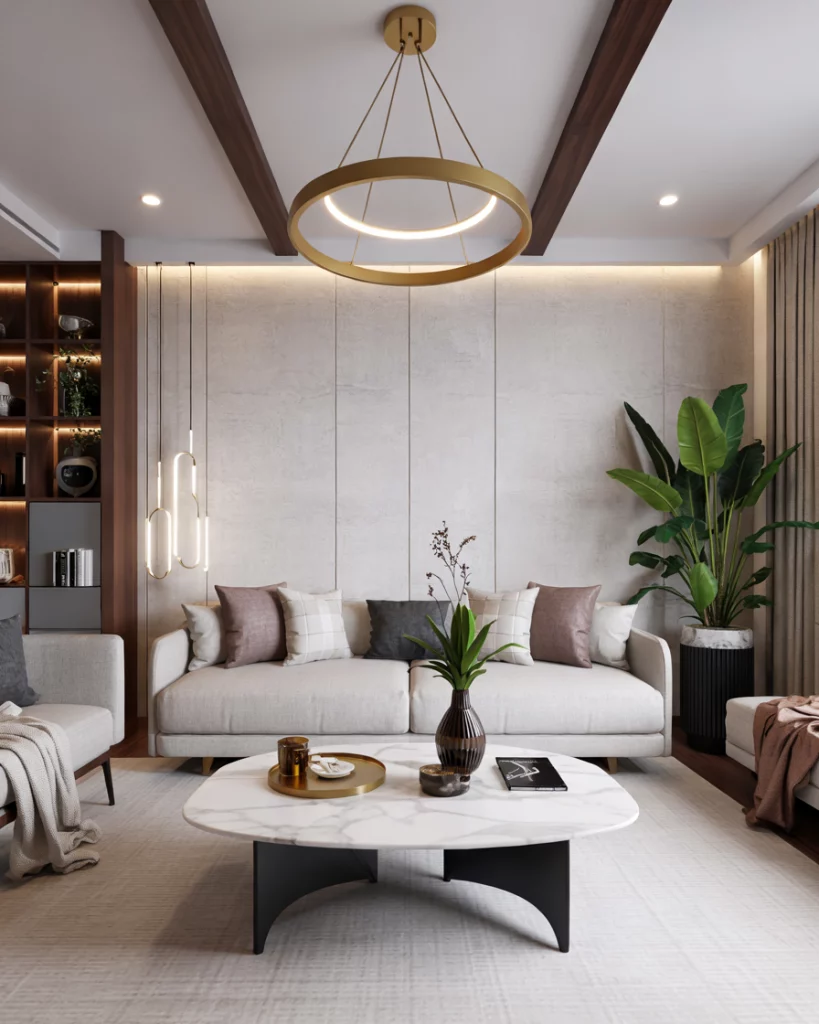If your living room flows into dining or kitchen areas, a minimal, modern design with contemporary luxury ensures cohesion across spaces. Choose neutral walls, streamlined furnishings (grey couch, low profile coffee table), and keep decor intentionally limited. The fewer visual distractions, the stronger the sense of calm and unity. Designers note that 2026 favours fluid layouts over compartmentalized rooms.