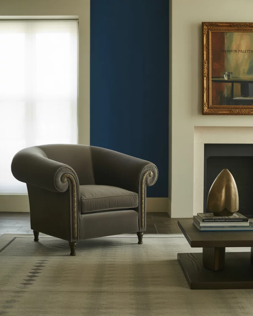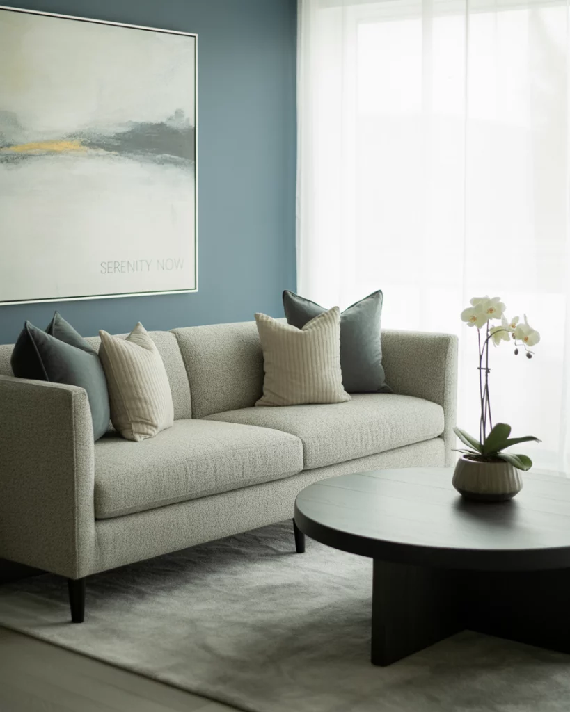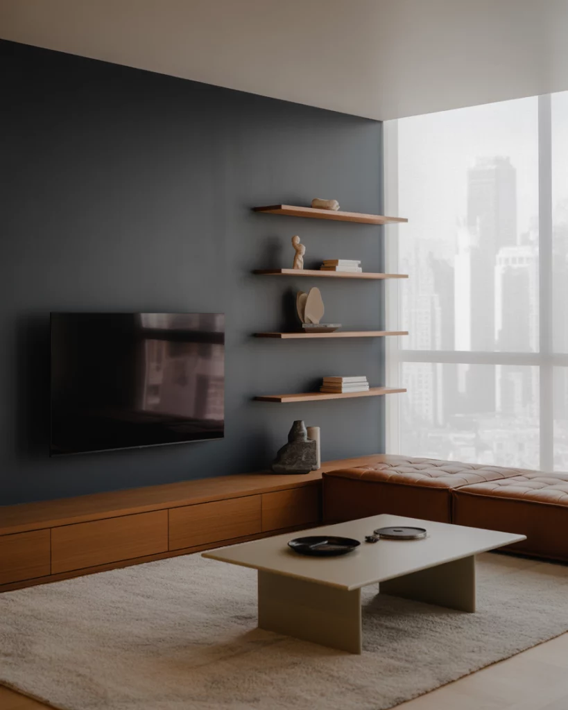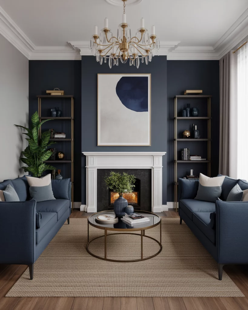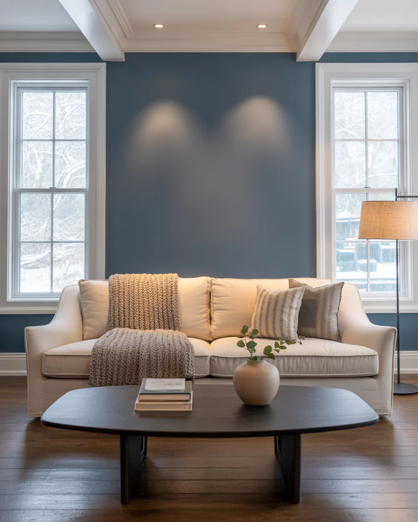 Deep blue has been gaining traction as the perfect dramatic backdrop. Using it as an accent wall behind dark furniture sofas makes the room feel sophisticated yet inviting. When paired with neutral rugs and grey textiles, navy provides a timeless balance of boldness and comfort. Designers at Sherwin highlight navy as a future-proof choice.