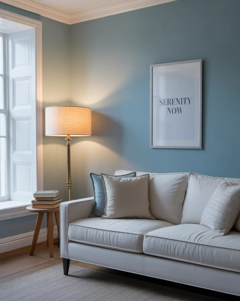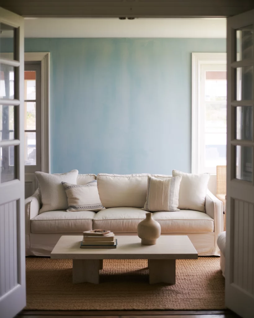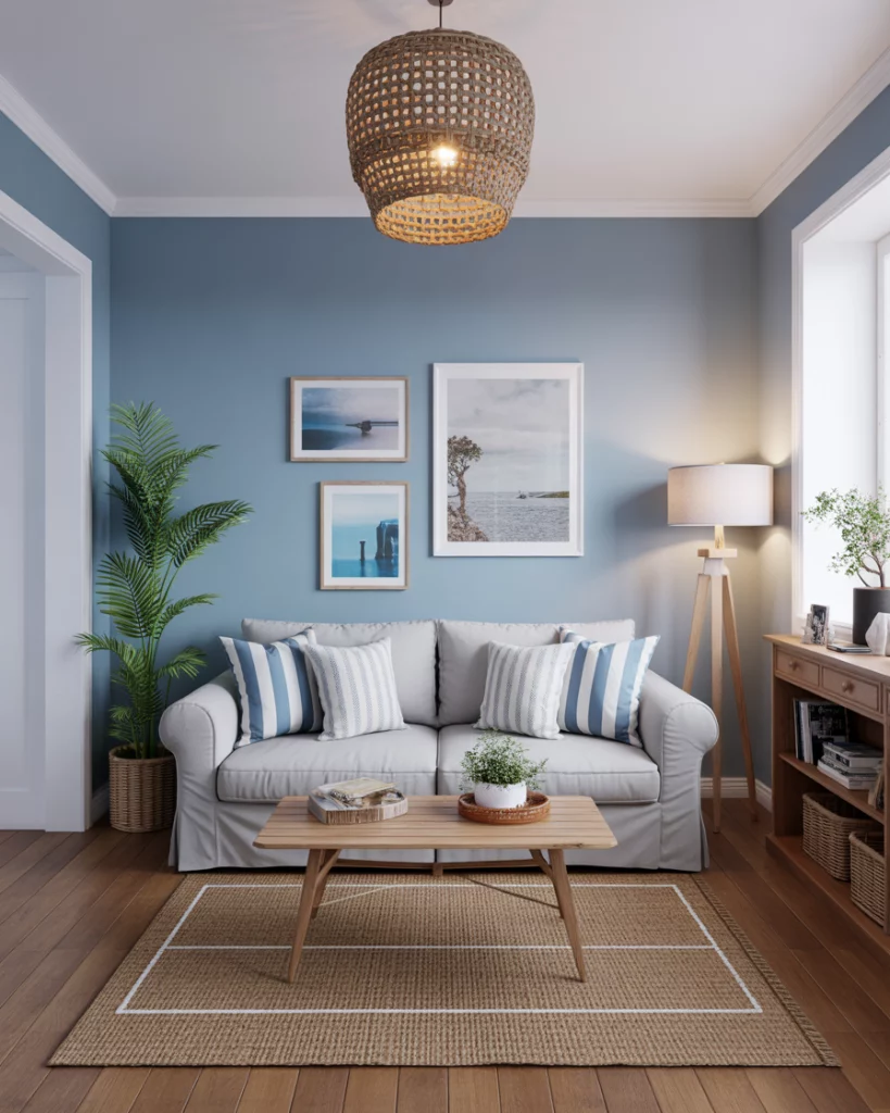 Designers predict an enduring love for blue. An accent wall light blue offers a serene, coastal vibe that feels instantly relaxing. It works especially well in small spaces cozy settings, where the color opens up the room. Pair with white, soft grey, or behr creamy tones to make the room feel airy yet grounded.