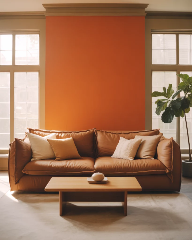 Adding a splash of orange on a single accent wall energizes the room and makes it feel vibrant. It’s a great option for family living rooms where lively conversation is the goal. Pair the orange wall with neutral tones on the remaining walls, plus light trims or brown furniture, to keep the balance between boldness and comfort.