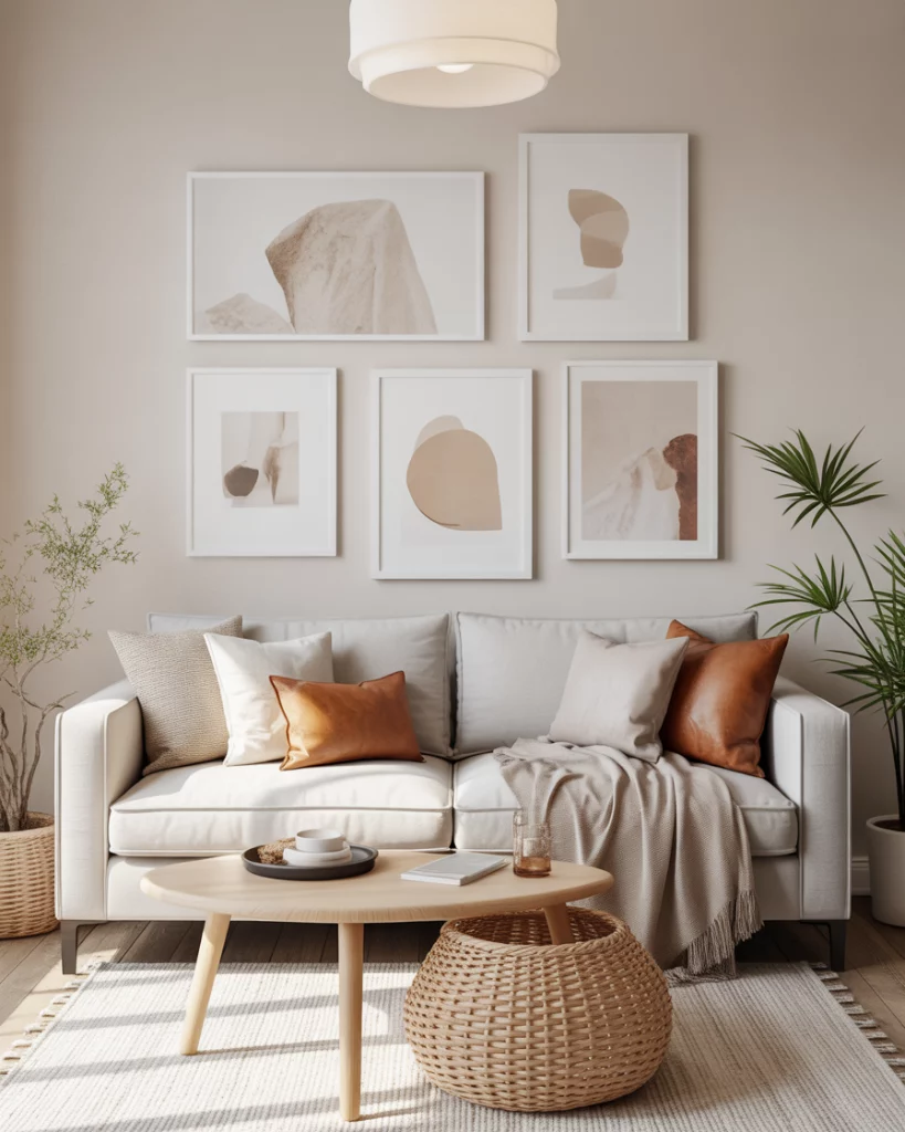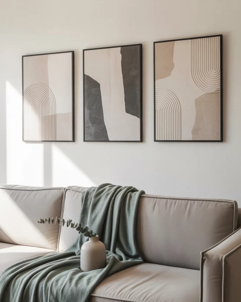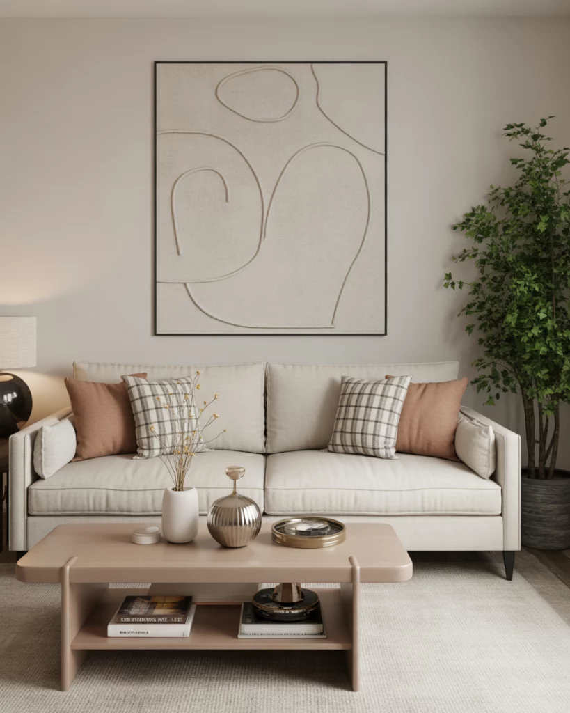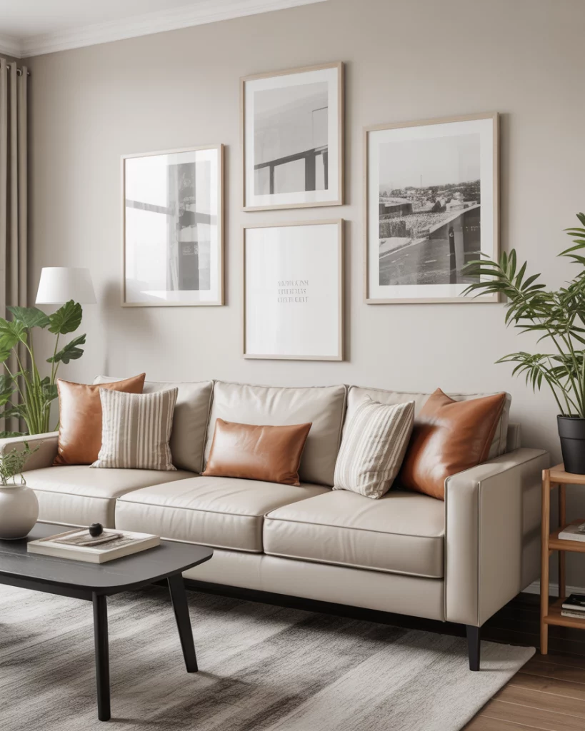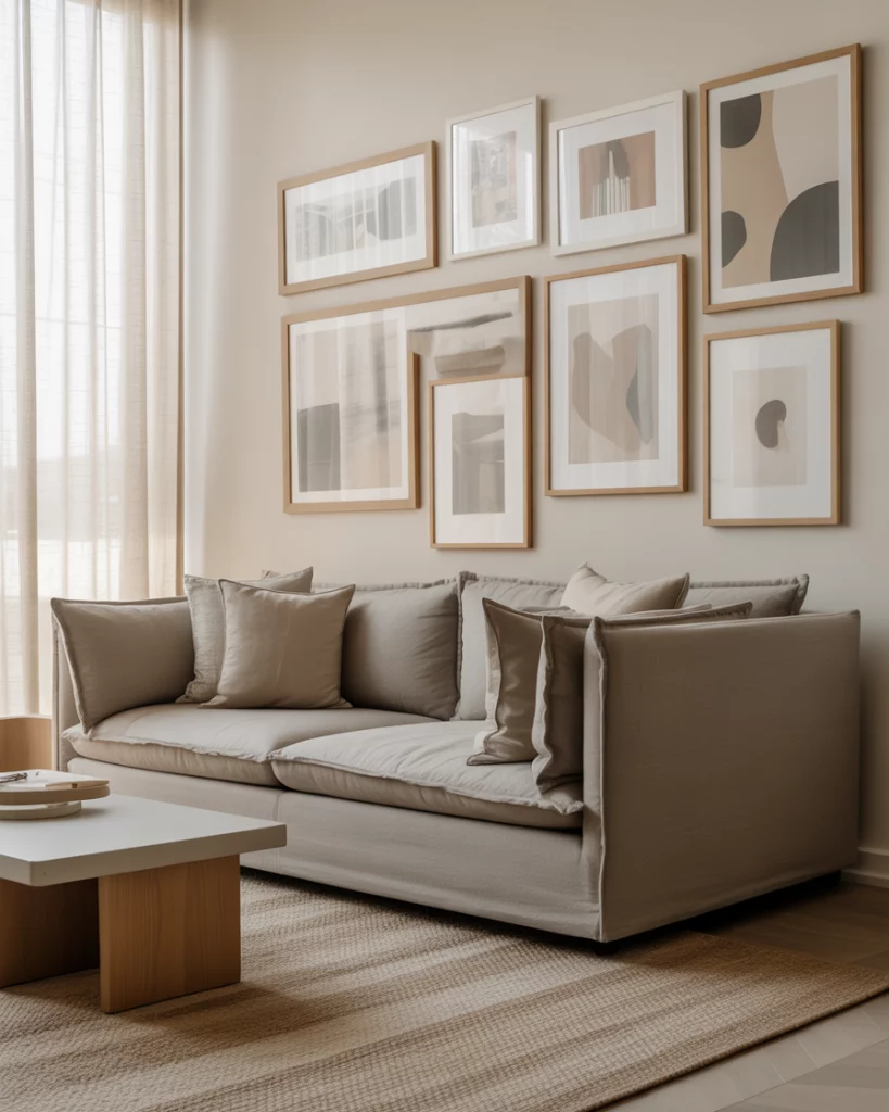 In 2026, neutral palettes dominate for those seeking ideas modern luxury without clutter. Beige, taupe, and soft grays create a serene background that makes furniture pop. Accent with slim black frames or sculptural wall hangings. These ideas above couch choices work beautifully in ideas apartment layouts, especially paired with Scandinavian-inspired sofas. The simplicity of neutrals creates a balanced story that feels timeless, calm, and easy to adapt.