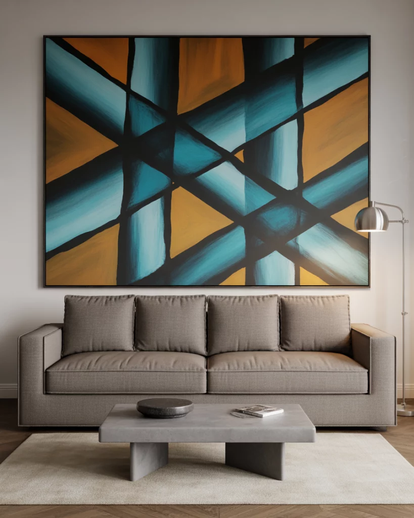 The boldest statement above the couch in 2026 goes to large art. A single giant piece of art makes a very directive statement and lends personality to the room, very unlike a cluster of small frames. This has a fine application in the apartment ideas where wall space is at a premium and so an impact is needed. The art can be something neutral to calm the room down, or it can be loud and colorful if you are leaning toward ideas of modern luxury. A gigantic piece above the couch immediately centers the space and keeps it free of visual clutter.