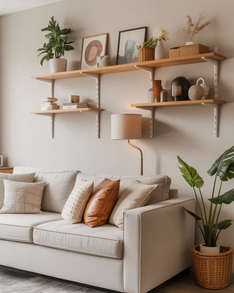 A fresh approach in 2026 is styling ideas shelves directly over couch zones. Instead of cluttering, these floating ledges display carefully chosen art prints, vases, or even ideas pictures in rotation. This flexible method works for ideas apartment spaces and can be easily updated seasonally. The result feels cozy yet elevated, especially when combined with neutral tones or soft lighting. This approach blends personal taste with practical designs.