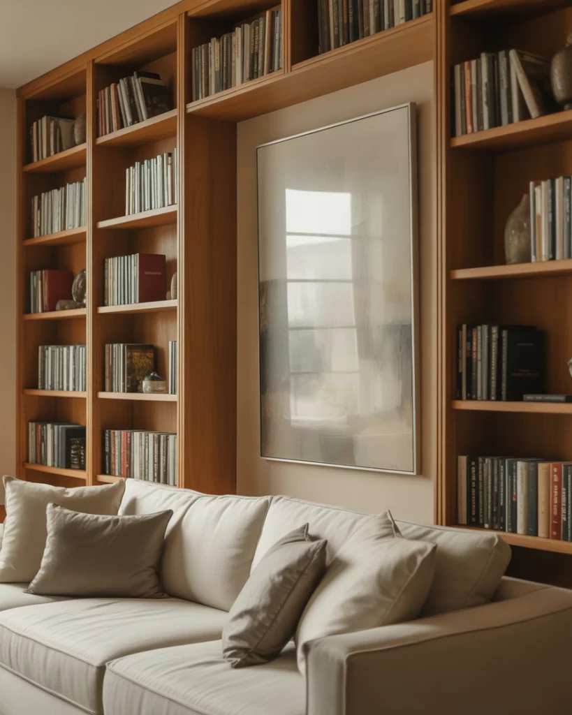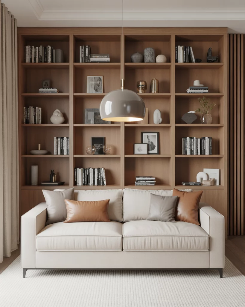 For those with space, tall built-in bookcases are making a comeback as wall-filling designs. They frame the couch or even surround a TV, turning storage into art. In 2026, slim minimalist profiles and integrated lighting make them feel fresh, not heavy. They’re practical in ideas apartment layouts too—especially when paired with ladders that highlight verticality and add architectural drama to a room with a vaulted ceiling.