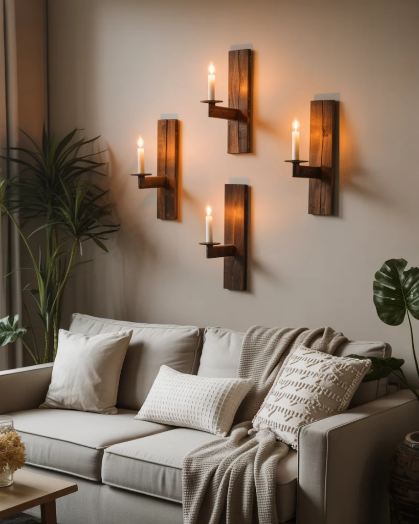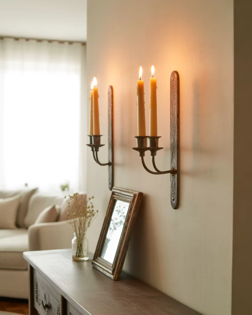 Adding candle sconces to living room walls remains timeless, but in 2026 they’re designed with sustainability in mind—using recycled metals and smart LED candles. These ideas modern wall accents create a warm, cozy atmosphere, especially when paired with rustic or modern farmhouse interiors. They’re also flexible—perfect for small apartment walls or expansive vaulted ceiling layouts. Designers like Emily Henderson often recommend sconces for balancing lighting while doubling as wall designs.