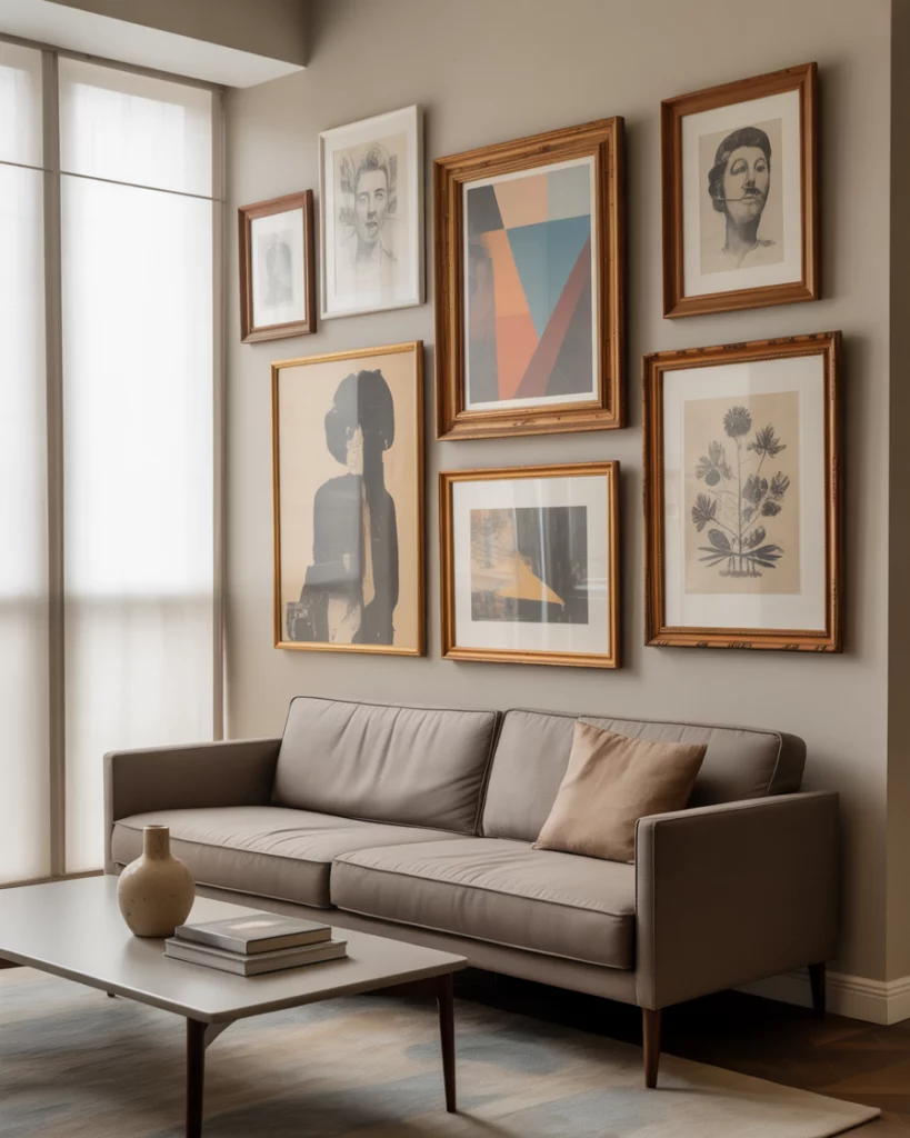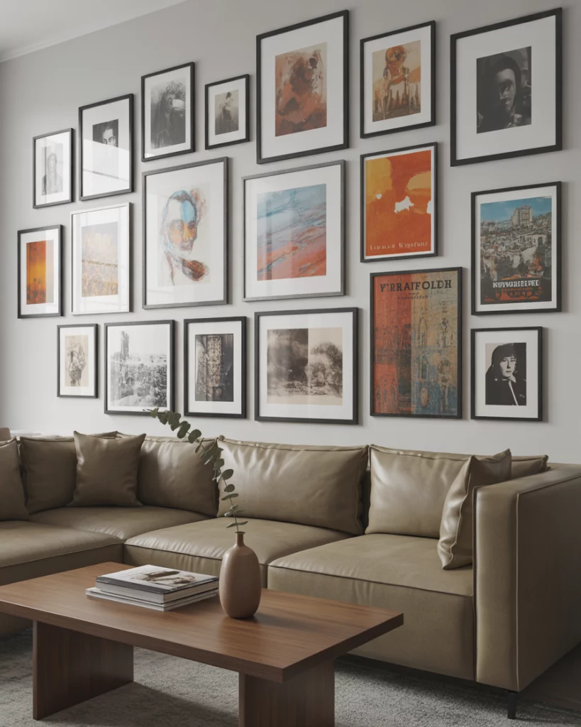 A chic 2026 look is layering slim neutral frames directly above couch areas. Instead of one large piece, decorators arrange 2–3 artworks in different heights for balance. This approach works for ideas modern spaces where symmetry feels too rigid. It tells a personal story through curated ideas pictures, yet stays minimalist enough for ideas apartment layouts. Many stylists recommend mixing line art with muted photography for a calm, cohesive effect.