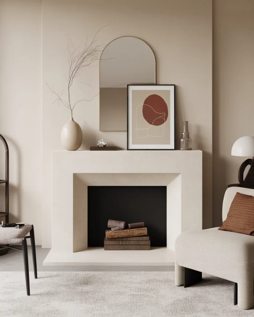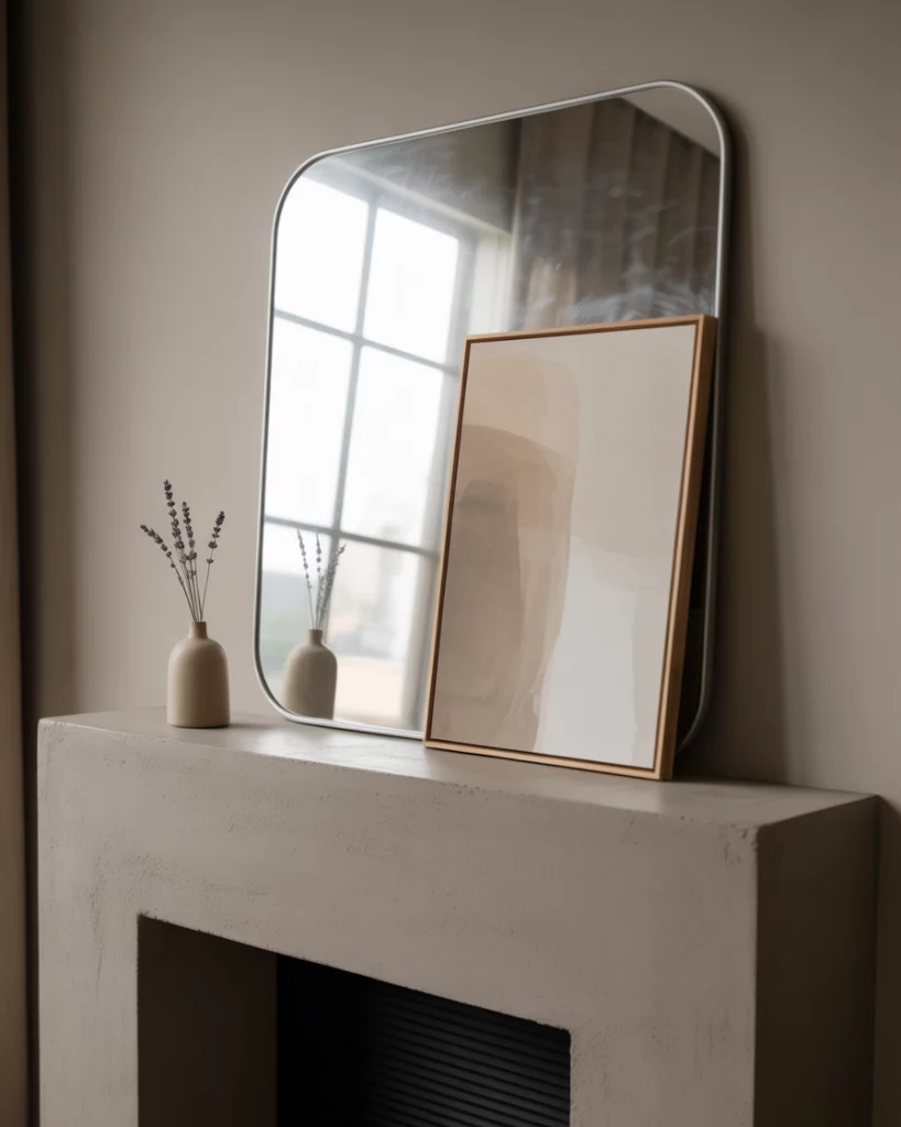 For those drawn to contemporary design, a minimalist mantle is the answer. Neutral tones, straight lines, and uncluttered surfaces dominate the look. Use a sleek fireplace mirror or abstract artwork with tv nearby for balance. This style thrives on less-is-more—think one bold vase instead of a dozen trinkets. I’ve noticed younger homeowners embrace this, enjoying how it pairs with clean architecture and modern interiors.