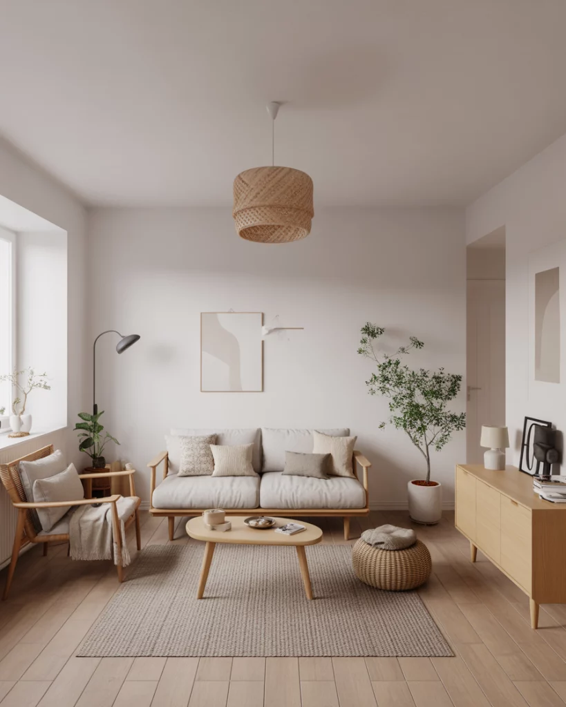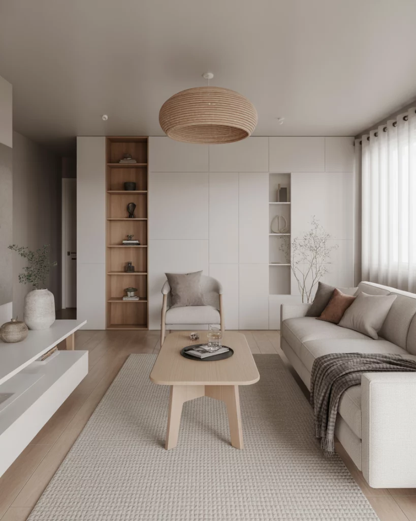 The Scandinavian approach remains one of the strongest design inspiration trends for minimalists in 2026. Light-filled rooms, pale neutral palettes, and simple furniture arrangement ideas define this look. Think slimline wood tables, low-profile sofas, and oversized knit throws. This style excels in small tiny homes, where open layouts and functional storage maximize every inch. By focusing on natural light and soft textures, the Scandinavian living room feels calm and inviting without being overly decorative—proving that minimalism can be both functional and cozy.