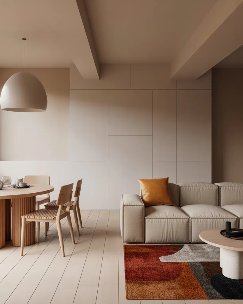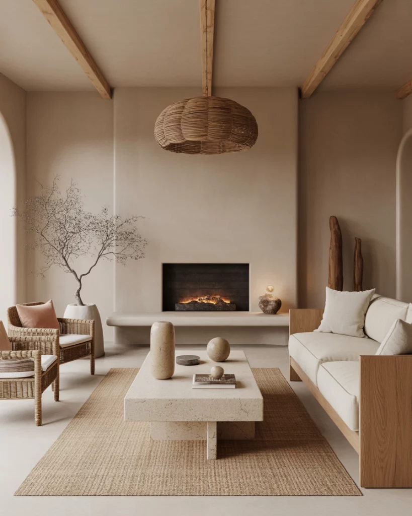 Nature-driven minimalism is a strong inspiration for 2026. Picture earthy stone coffee tables, pale oak shelving, and neutral walls softened by natural-fiber rugs. This style works beautifully in apartments that want to bring the outdoors in. With a pared-back approach to furniture and accessories, every piece feels intentional. The result is a calming sanctuary that connects you to nature while staying clean, simple, and timeless in its design.