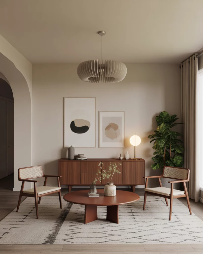 For those who love retro flair, the mid century minimalist living room offers the perfect bridge between vintage charm and contemporary designs modern luxury ideas. Low-slung sofas, tapered wood legs, and simple coffee tables provide structure without excess. In 2026, mid-century-inspired minimalism embraces neutral backdrops but adds bold accents like a sculptural lamp or graphic rugs. This balance creates a timeless atmosphere that appeals to both design purists and eclectic homeowners who appreciate history without clutter.
