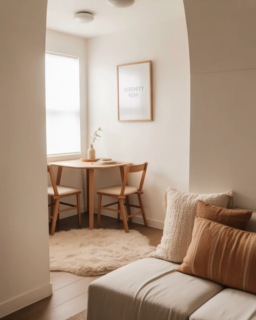 Minimalism finds its true strength in small tiny homes where every inch counts. In 2026, clever furniture arrangement ideas—sofas with hidden storage, fold-out tables, or modular shelving—are essential. Combining a living room with dining area allows these spaces to feel multifunctional without clutter. Choosing neutral tones and cozy boho textiles keeps the home inviting, while compact rugs define each zone. This practical yet stylish approach is an inspiration for anyone downsizing or rethinking urban living.