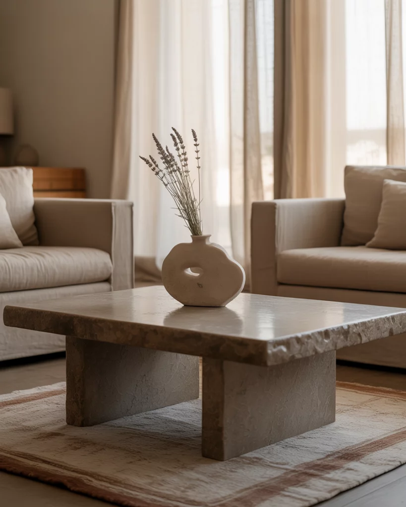 Nature-driven minimalism is a strong inspiration for 2026. Picture earthy stone coffee tables, pale oak shelving, and neutral walls softened by natural-fiber rugs. This style works beautifully in apartments that want to bring the outdoors in. With a pared-back approach to furniture and accessories, every piece feels intentional. The result is a calming sanctuary that connects you to nature while staying clean, simple, and timeless in its design.
