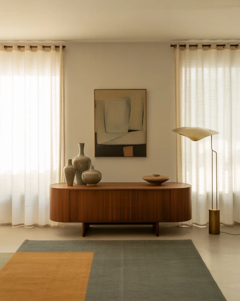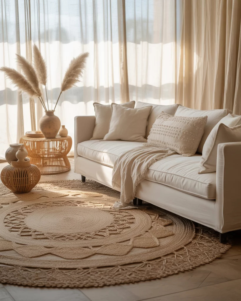 Minimalism doesn’t mean a bare floor. In 2026, statement rugs are a central design inspiration in many minimalist spaces. A bold geometric or handwoven pattern grounds the room, while neutral furniture keeps the look clean. This balance works well in both contemporary lofts and small tiny homes, where a rug can help define zones. Adding one strong rug avoids clutter yet gives the space personality and a sense of artistry.