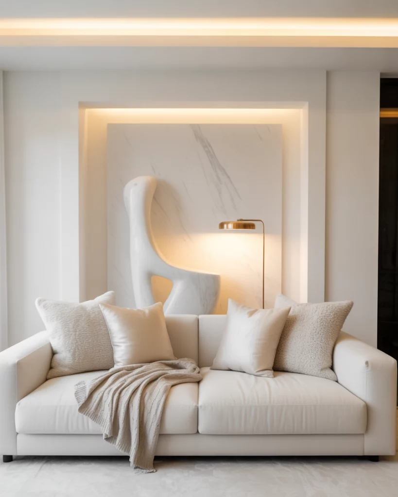 Minimalism in 2026 embraces inspiration from art. Instead of clutter, a single large canvas, sculptural lamp, or handmade furniture piece becomes the focal point. The rest of the room remains neutral and pared back, allowing the art to shine. This approach is perfect for apartments or designs modern luxury ideas homes that want personality without chaos. With the right furniture arrangement ideas, every piece feels intentional, elevating minimalism into artistry.
