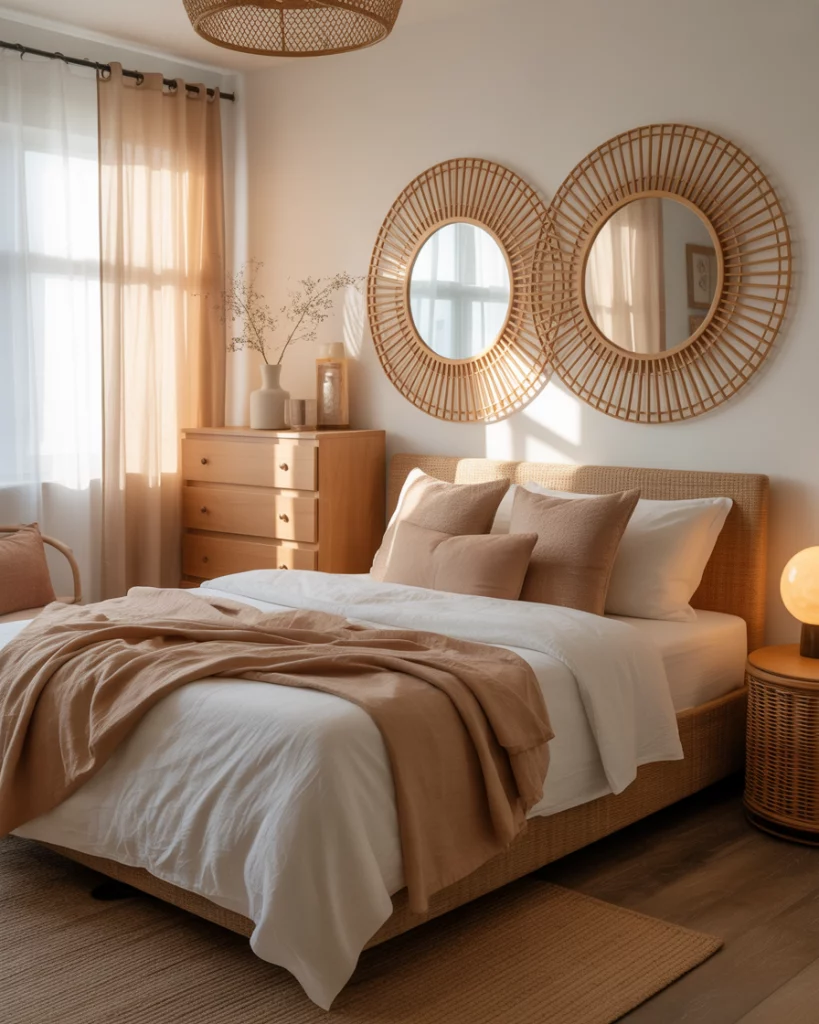 13 Rattan-Framed Mirror Triptychs for Cozy Bedrooms