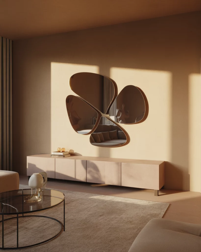 Overlapping abstract mirror shapes create a gallery-like presence in modern homes. Their sculptural edges add depth and pair well with curated ideas that celebrate artful interiors. They shine in airy spaces that embrace unusual proportions or conversational furniture layouts. Many open-plan homes need décor that defines zones without walls. Abstract mirrors create visual anchors that gently divide living spaces.