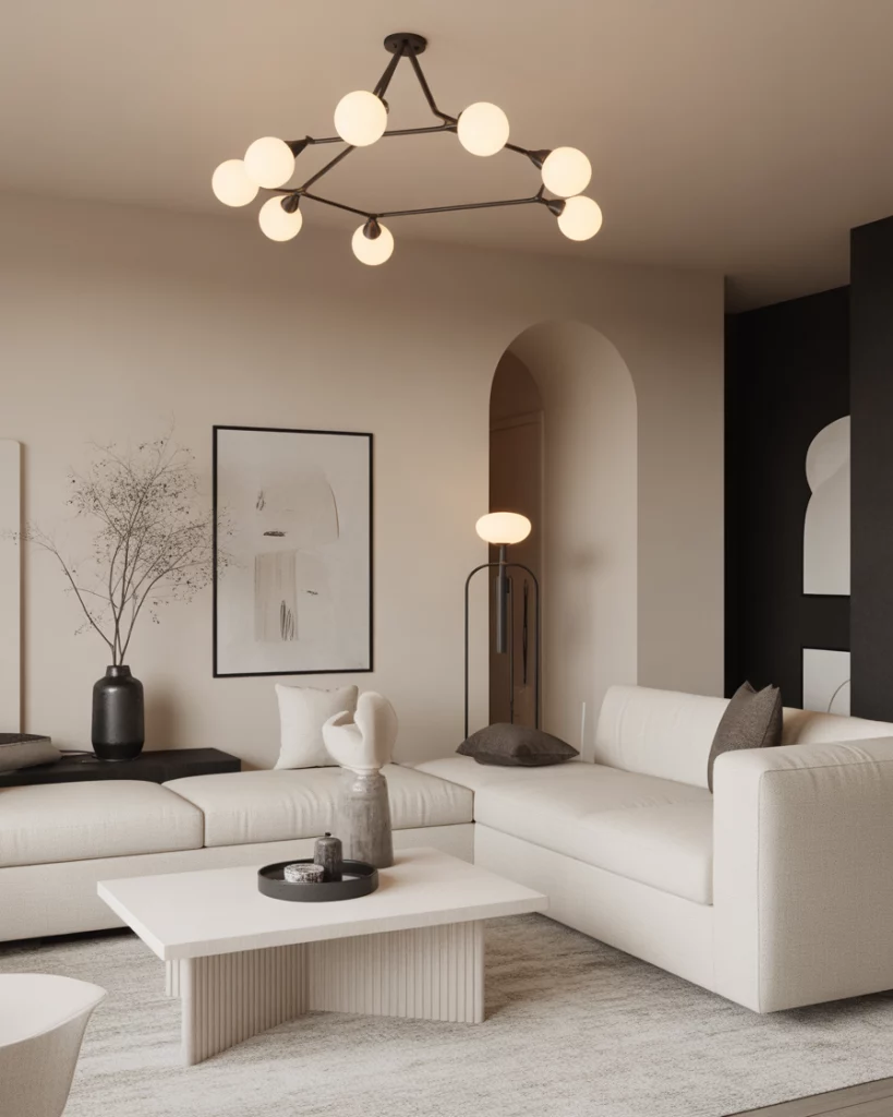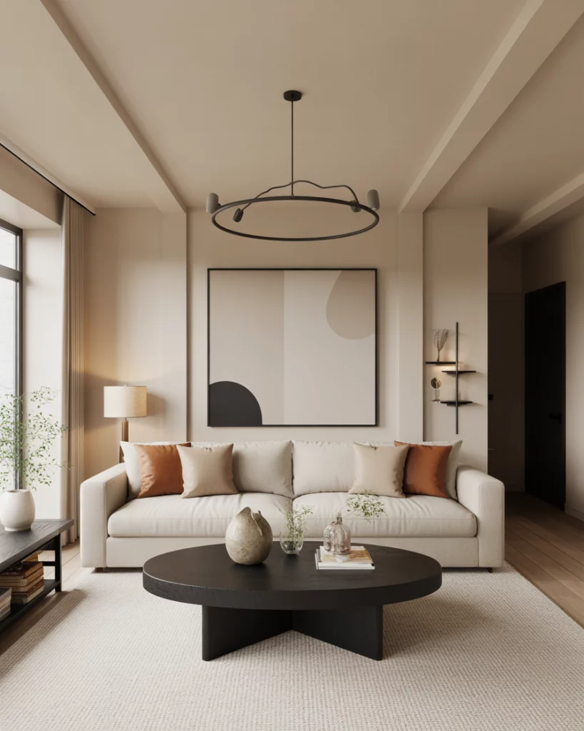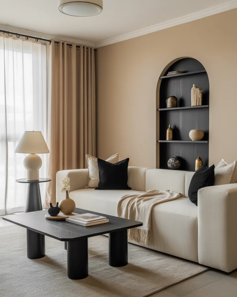 Light-colored living rooms designed in 2026 are at their best with the addition of bold black accents that give form without restricting coziness. This type of decor is great if you live in an apartment because it adds definition to the neutrality of the decor. I have noticed that this type of home decor can only include cream-colored walls with black picture frames or black lamps that add tiny elements of decor that still make room for the addition of additional colored decor later on.