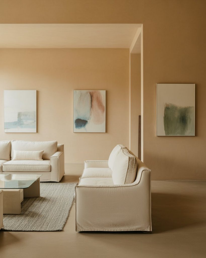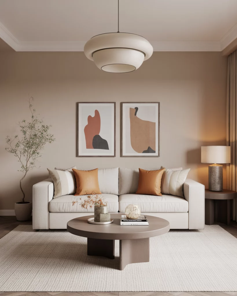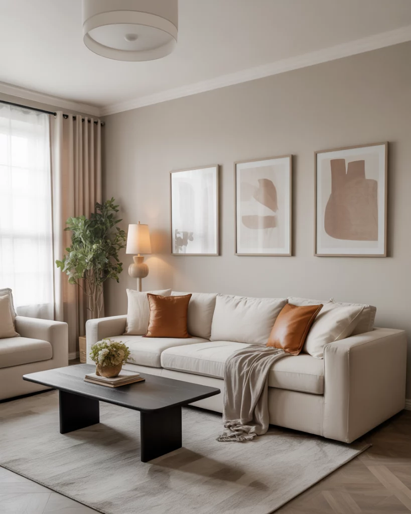 If you want to try adding color without changing furniture, artwork is the safest path. Neutral living rooms in 2026 often feature abstract pieces that introduce subtle colors like muted amber, soft blue, or quiet terracotta. As many decorators write on sites like Studio McGee, artwork can signal personality without overwhelming the room.