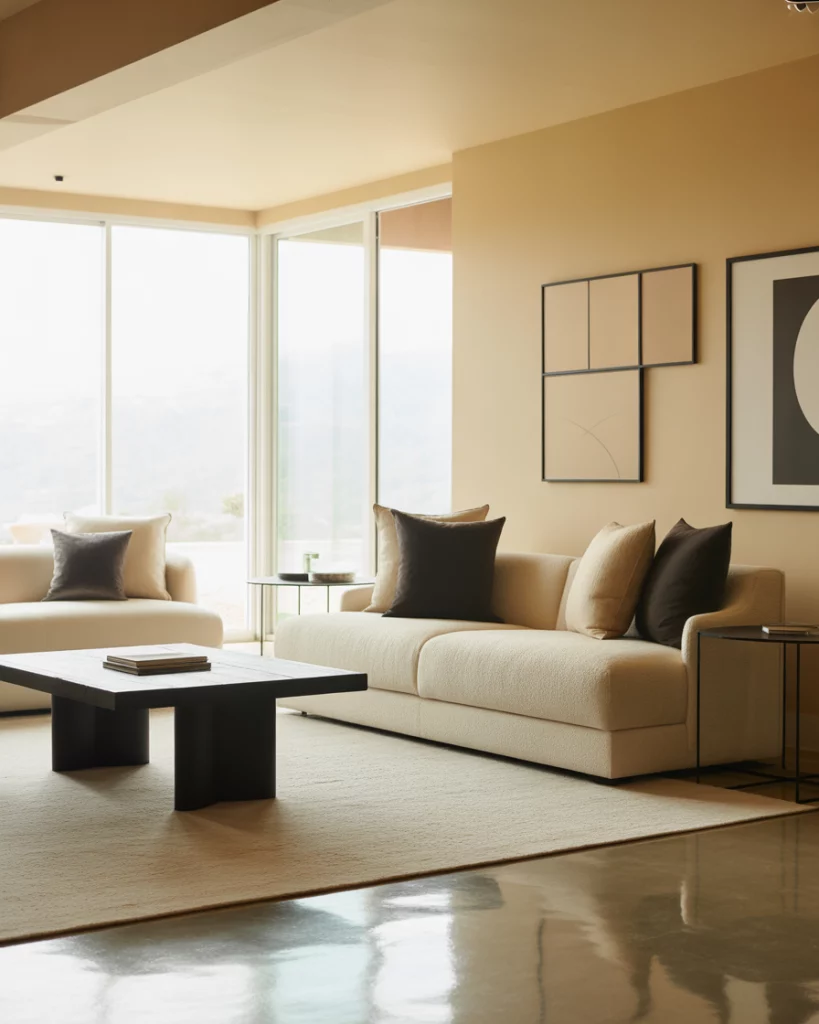 A well-chosen rug (or rug with black accents) can define a neutral living room more than any wall color. In 2026, textured rugs—bouclé, jute, hand-knotted wool—add just enough character while staying understated. Designers often say the rug “sets the tone,” and I’ve found it’s the one piece clients rarely regret investing in.