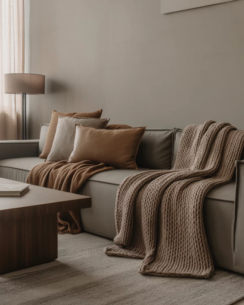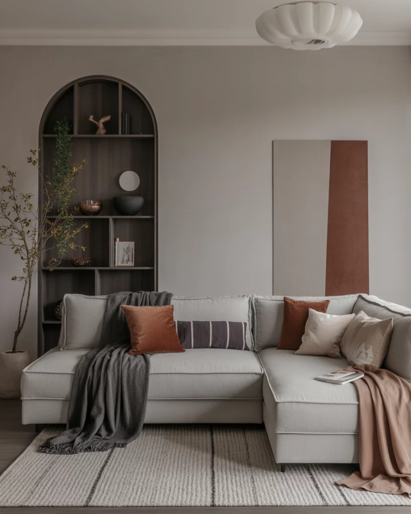 The pairing of grey and brown is returning as a softer alternative to stark monochrome palettes. It’s perfect for spaces that need subtle variation while staying restrained. I’ve used this combination in smaller rooms to keep things grounded without losing brightness, especially when paired with tactile throws that feel wonderfully cozy.