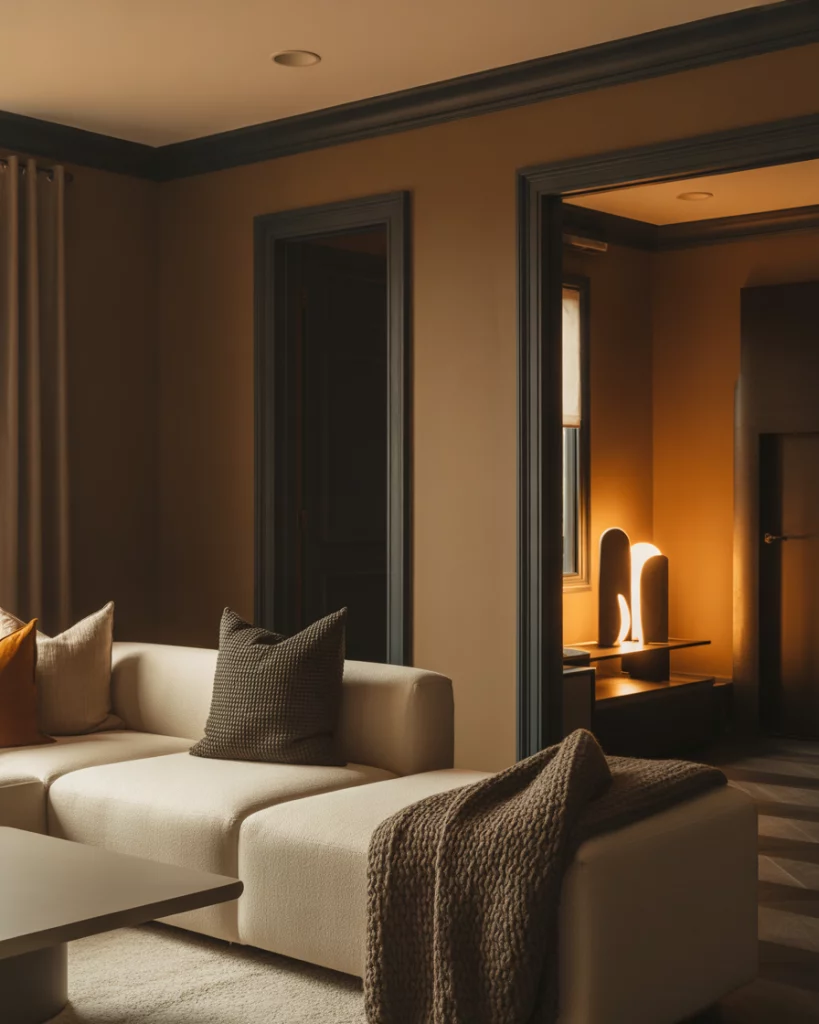 For those who enjoy depth but not darkness, 2026’s answer is neutral palettes with a gentle moody edge—taupe walls, smoky linens, and charcoal trims that avoid feeling too dark. I’ve noticed this style is popular among people wanting drama without sacrificing comfort. Proper lighting keeps the atmosphere warm and intimate.