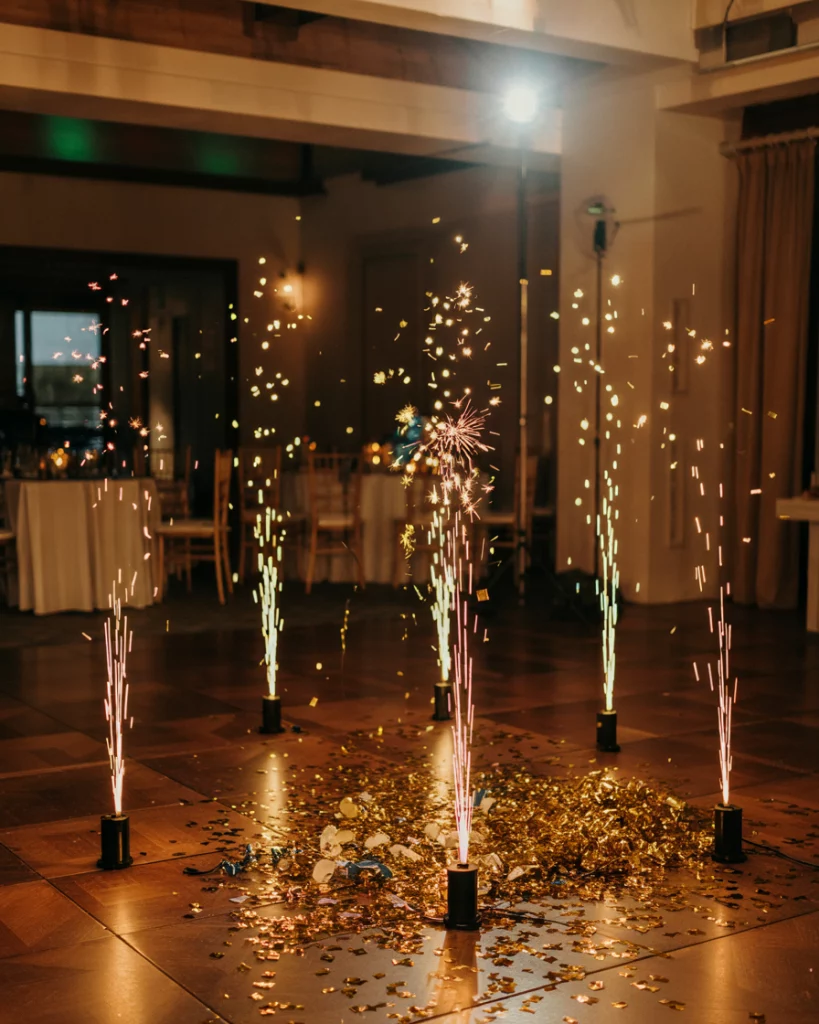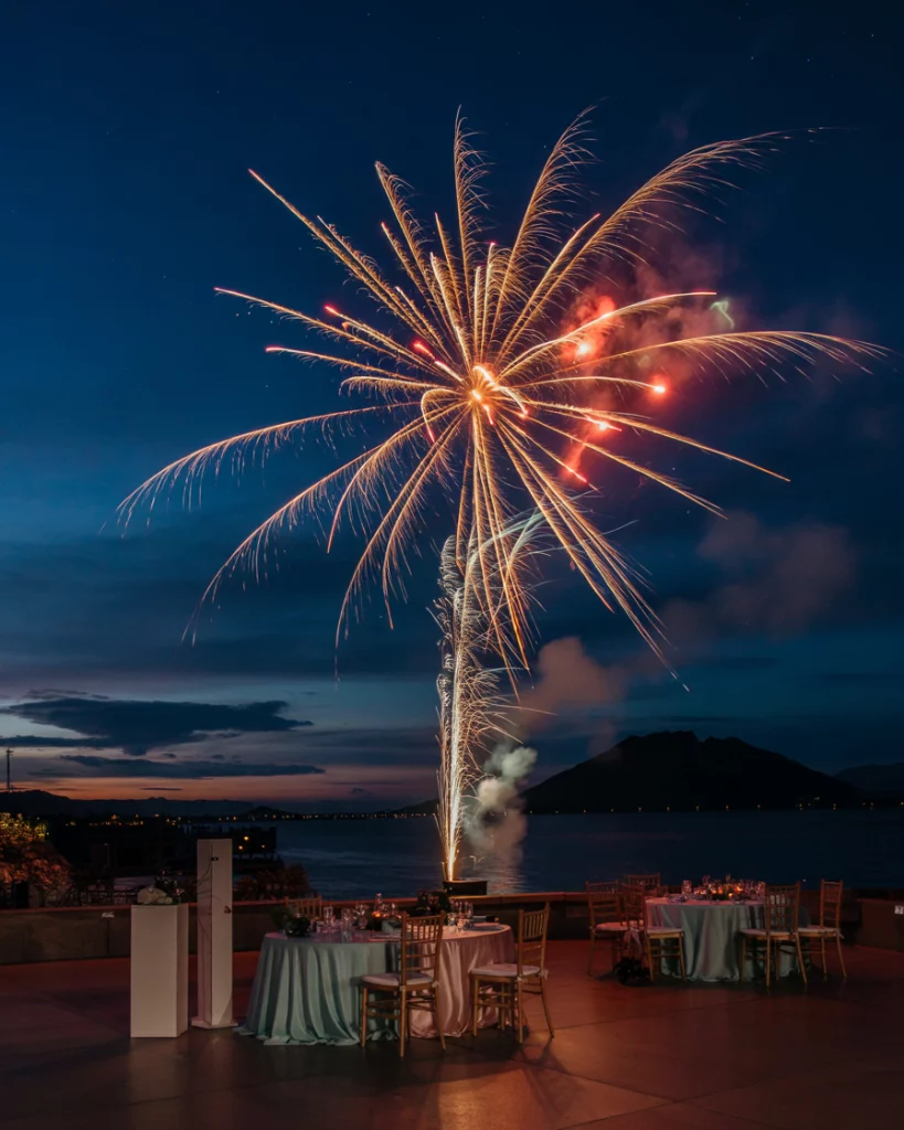 A fireworks display becomes the ultimate décor element when timed with midnight. Vibrant bursts of color light up the sky, extending the color palette beyond the venue walls. It’s a dramatic way to mark both marriage and the new year.