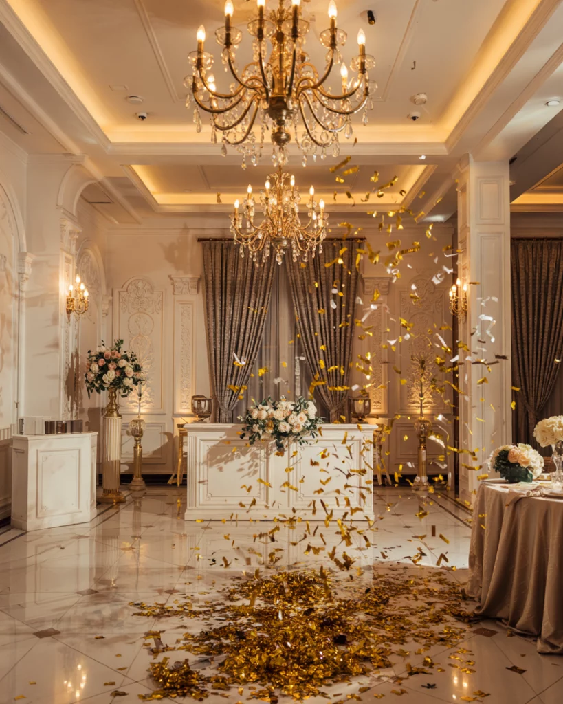 As midnight arrives, a confetti burst across the venue transforms the party. Whether cascading over tables or filling the dance floor, it creates a spectacular atmosphere. Paired with dramatic decorations, it ensures a dazzling finale.