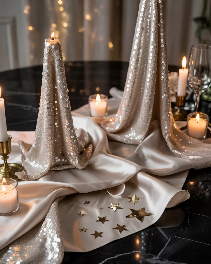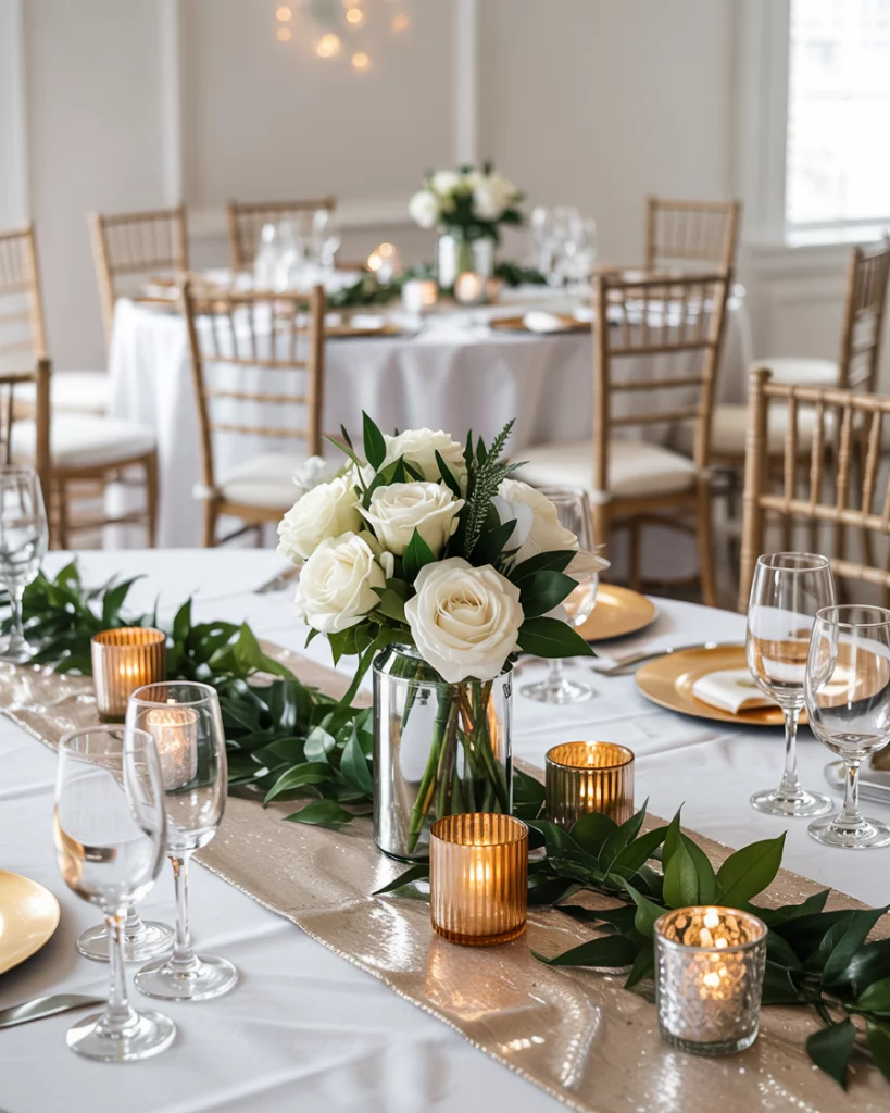 22. Metallic Table Runners and Glitter Accents