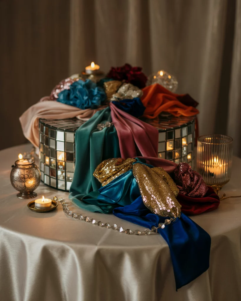 Design inspiration can come from what a guest outfit might reflect—sparkling textures, jewel colors, and polished finishes. Translate these into decorations such as glittering linens, mirrored vases, or velvet ribbons. This keeps the aesthetic cohesive and celebratory throughout the event.