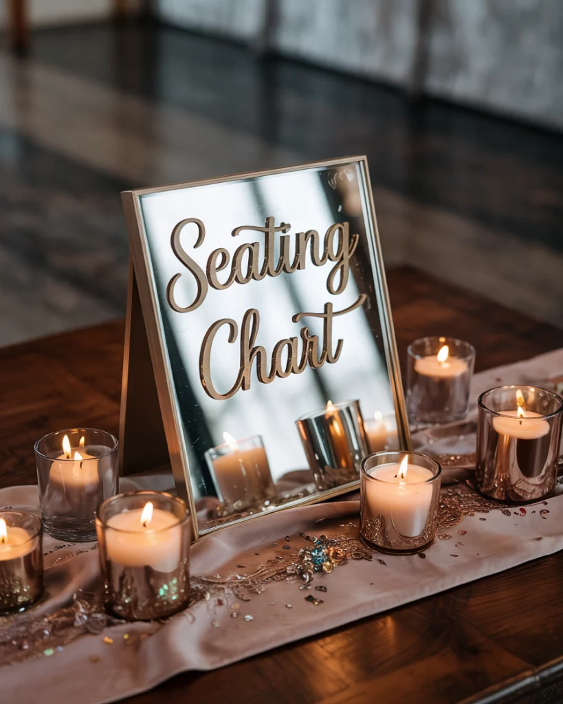 A seating chart displayed on mirrored boards or surrounded by glowing candles doubles as a design statement. Adding metallic lettering or glitter frames ties it to the rest of the decorations. This detail creates excitement and seamlessly blends function with festive aesthetic.